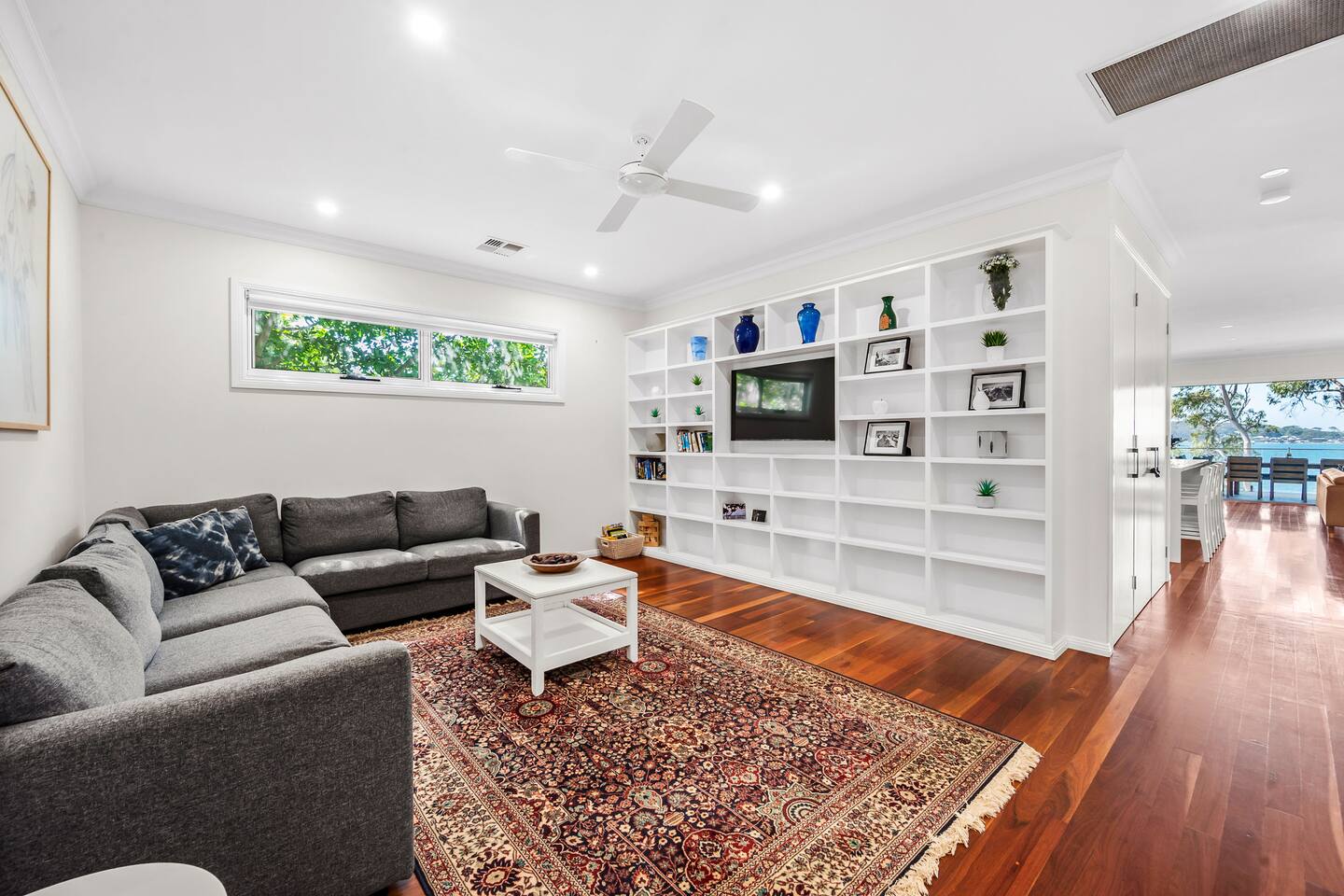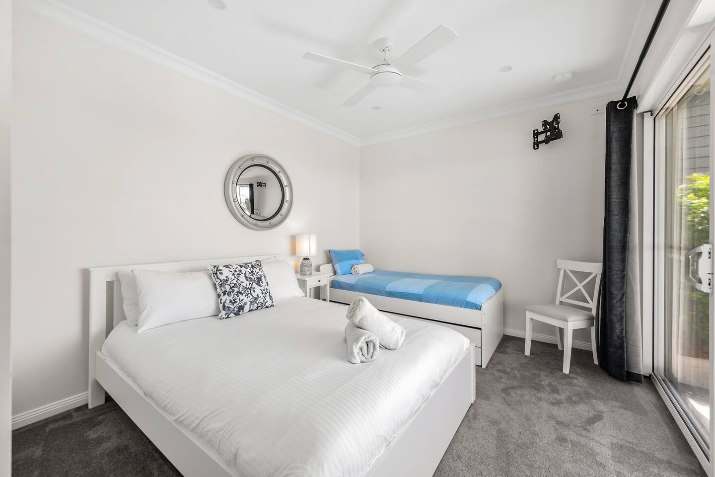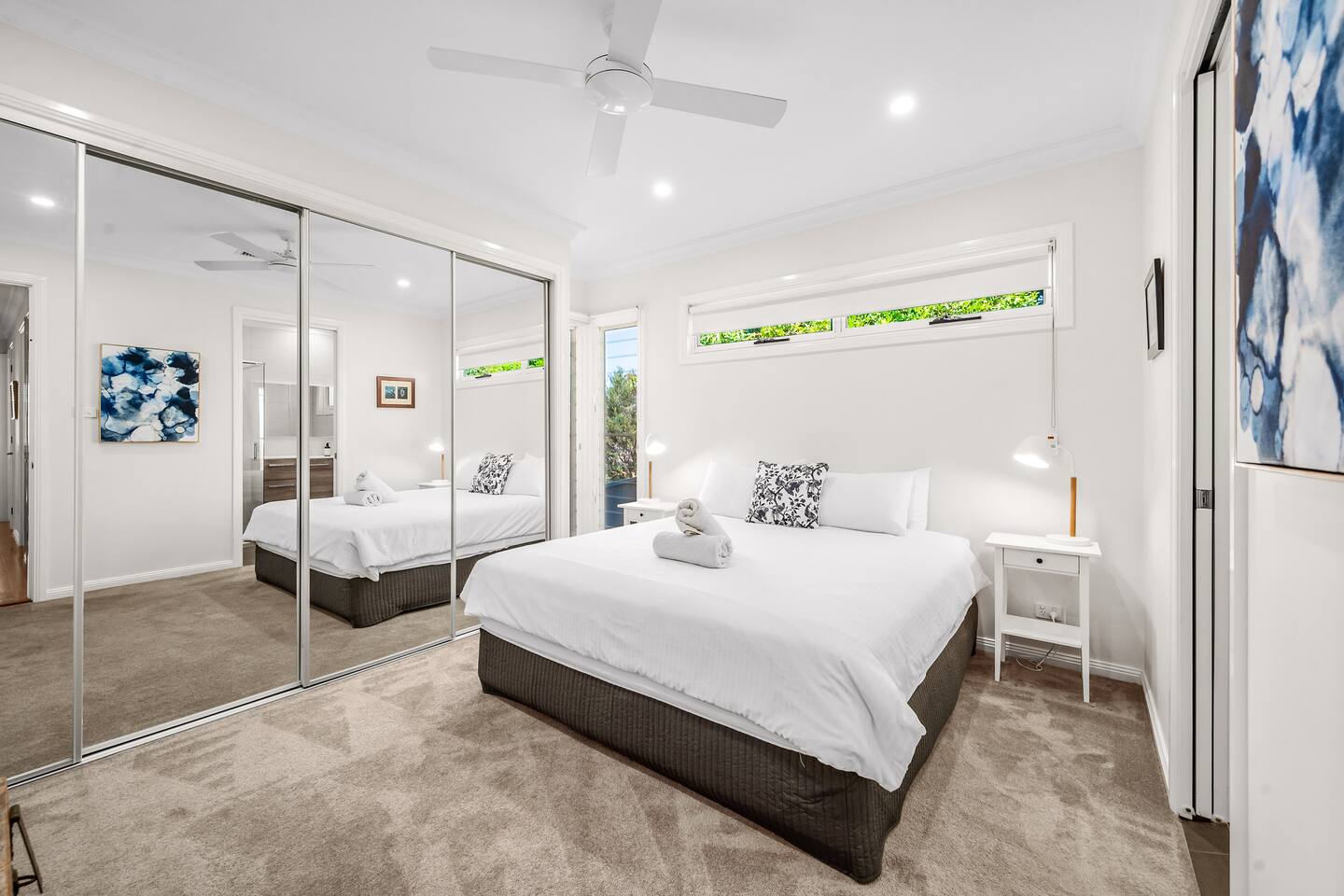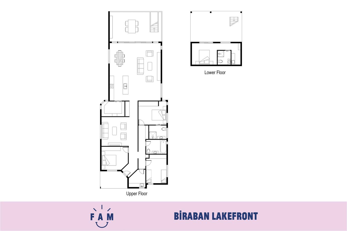 Perfect for two families, Biraban Lakefront is a near new four bedroom, three bathroom absolute waterfront home set across two levels. Enjoy a luxury holiday with the whole family whether they come on two legs or four! - Featuring direct lake access with private jetty fitted with a ladder and mooring. Perfect for swimming and boating (BYO fenders). Note the boatshed is not included in the rental and will be locked - Sparkling in-ground pool with sun loungers and seating - Upstairs you will find three bedrooms, two bathrooms, kitchen, butlers pantry, open plan living and dining, balcony and second lounge room. - Downstairs there is a self contained suite with bedroom, ensuite and kitchenette. Plus another undercover outdoor lounge area. Entry to the apartment is via external access. - Comfortably sleeps 8 adults. This can be extended to a maximum of 11 guests with trundle beds for up to 3 children. Please see below for the sleeping arrangements. - Top level air conditioned throughout and bedrooms with ceiling fans - Linen, bath & pool towels and kitchen essentials are provided. - Dog friendly. Please enquire before booking - Secure fences and gates for dogs and little ones including the stairs - Fenced grass lawn with stairs down to the bottom deck and jetty - Webber BBQ - Pod coffee machine (aldi) - Blue tooth speakers - NBN internet connection - Smart TV's - Plenty of off street parking for cars and boats - Guest room 1 - Master suite, king bed and ensuite - Guest room 2 - Kids room, single bunk beds plus a single bed with a trundle bed suitable for a small child only - Guest room 3 - Queen bed - Guest room 4 - Self contained apartment, queen bed, single bed, ensuite and kitchenette Guests will not have access to the garage or boat shed, there is plenty of off street parking on the driveway for cars and boats. **Before you contact us please be aware we have a max occupancy of 8 adults. We do allow up to 11 guests in the house however 3 of the beds are suitable for small children only.** Guest limits are firm, please do not bring extra guests. Our insurance only covers up to 11 guests which only 8 can be adults.