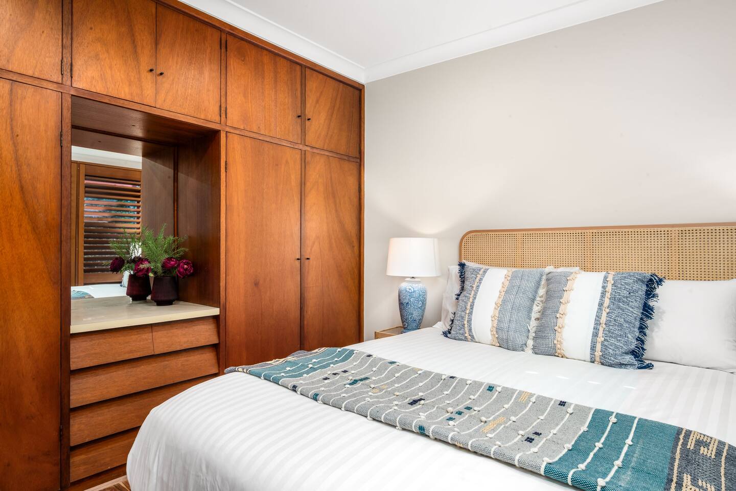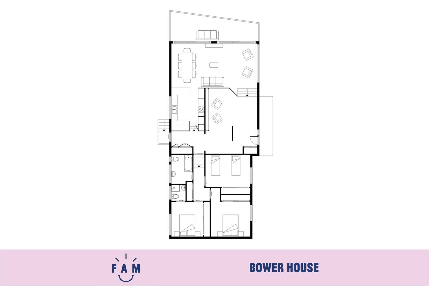 Bower House sleeps up to eight guests. The main bedroom features a king bed, the second bedroom has a queen bed with ensuite and the third bedroom has two king single beds. Two fold-away single beds are available and can be set up in the living room or in either of the two bedrooms for extra flexibility. Travel cots and highchairs can be provided with advance notice, though guests must bring their own linen for the cot. The home has two bathrooms and a laundry with washing machine. The kitchen is fully equipped and stocked with cooking basics such as oil, salt, and pepper. Quality linen and towels are provided, including some beach towels, along with eco-friendly guest consumables and cleaning basics. The open living and dining areas flow onto a deck with outdoor seating and a BBQ, perfect for relaxing or entertaining. The property has ducted reverse cycle air conditioning for year-round comfort. There is a carport on the property, though the block is steep, and some guests may prefer free street parking. The house also has stairs and a steep driveway, so it may not be suitable for guests with mobility issues. Best Bits: - Three bedrooms sleeping up to eight guests, including 2 fold-away single beds - Fully equipped kitchen with cooking basics - Two bathrooms and laundry with washing machine - Quality linen, towels and beach towels - Eco-friendly consumables and cleaning basics - Deck with outdoor seating and BBQ - Ducted reverse cycle air conditioning - Local tips from Bower House magazine Location: Bower House is tucked into a quiet residential bush setting in Merewether Heights, yet is only: - 5 minutes to Merewether Beach and Burwood Beach - 10 minutes to Newcastle CBD - 5 minutes to The Junction shopping centre - 7 minutes to Westfield Kotara - Close to coastal walking tracks, ocean baths, cafés, and restaurants