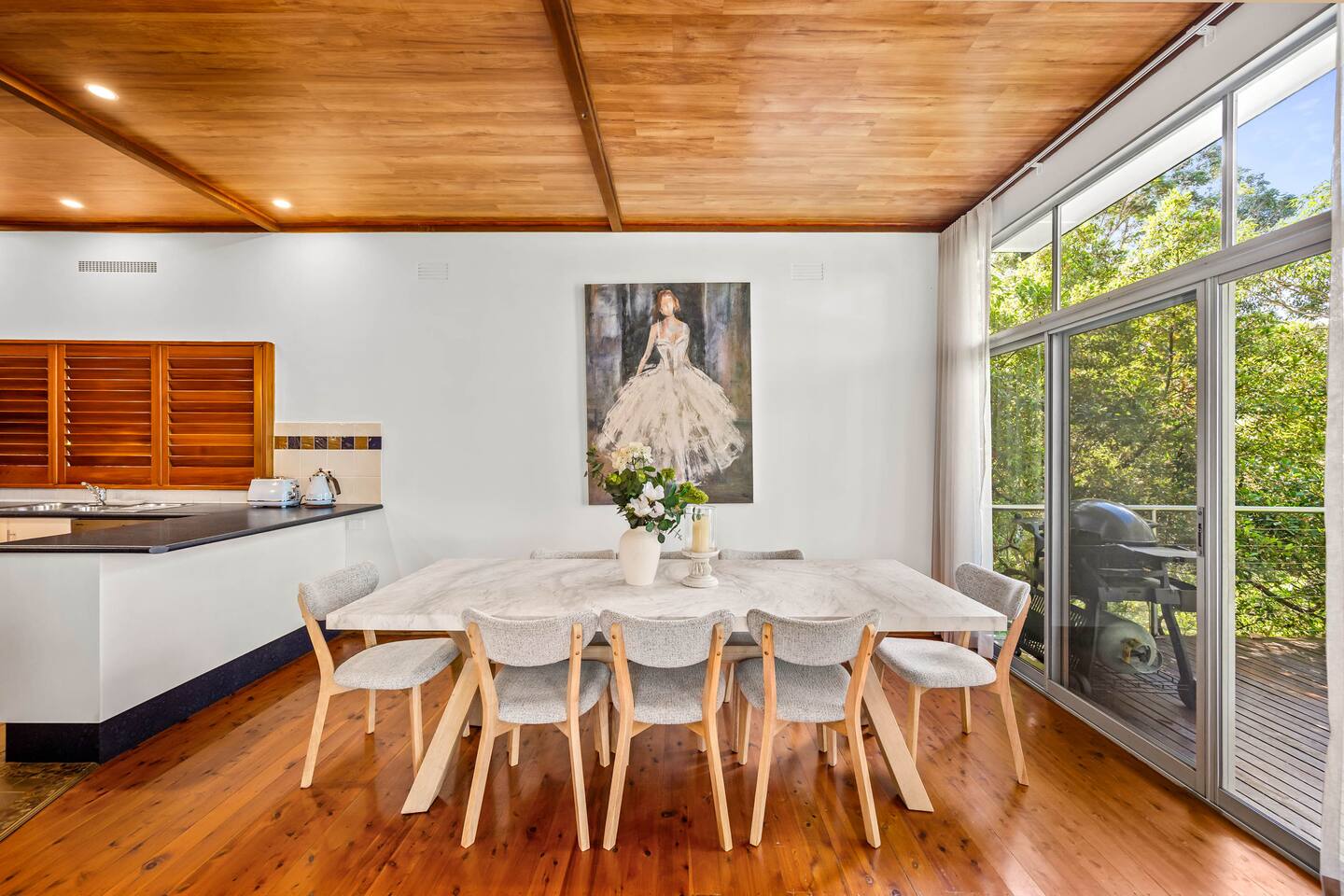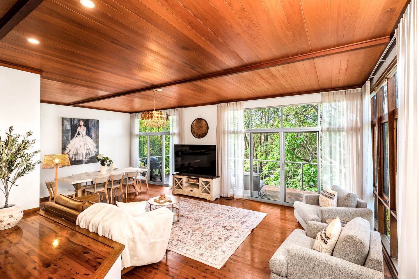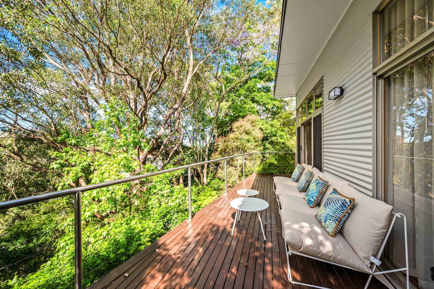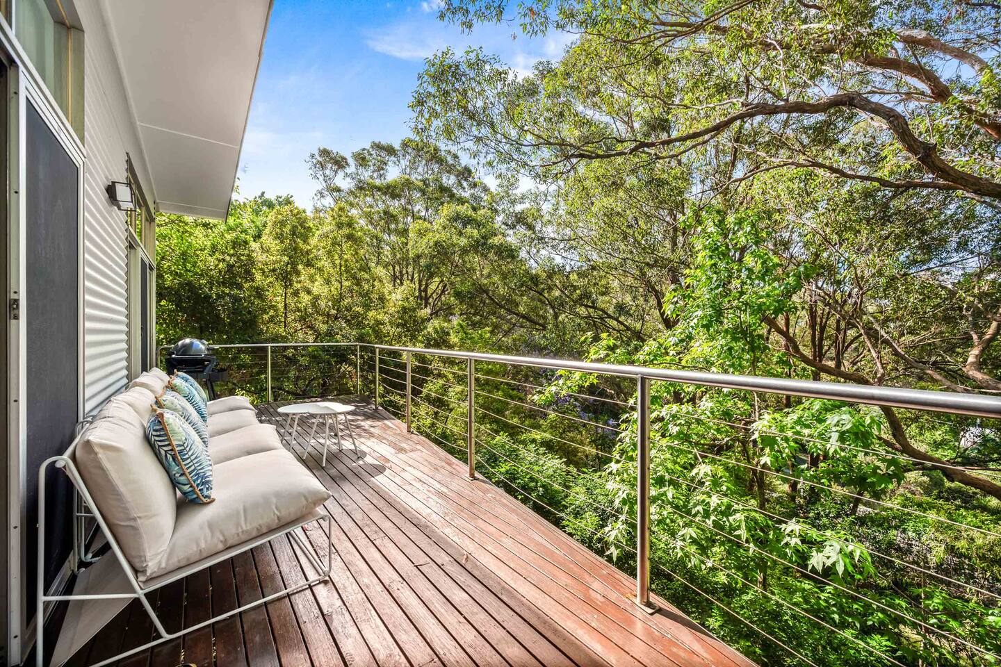 Bower House is a peaceful treetop retreat in Merewether Heights. Surrounded by bushland yet just minutes from the beach, it features floor-to-ceiling glass overlooking the canopy, beautiful furnishings, and a calm, relaxed atmosphere. Perfect for families or friends wanting a private, light-filled escape close to Newcastle’s beaches, cafés, and coastal walks.
