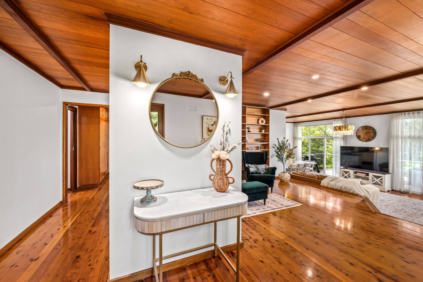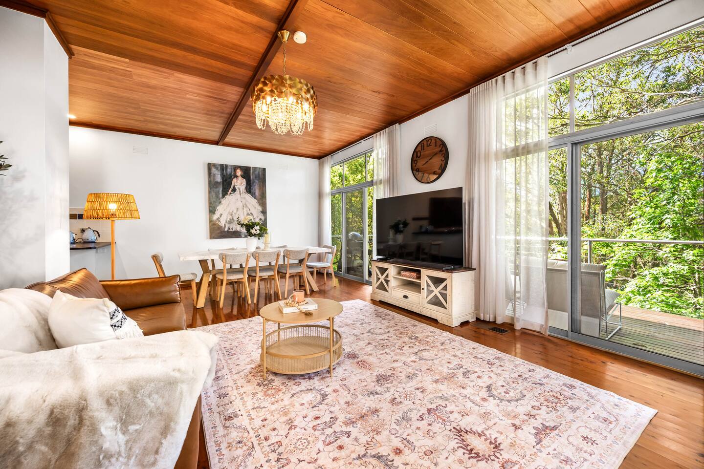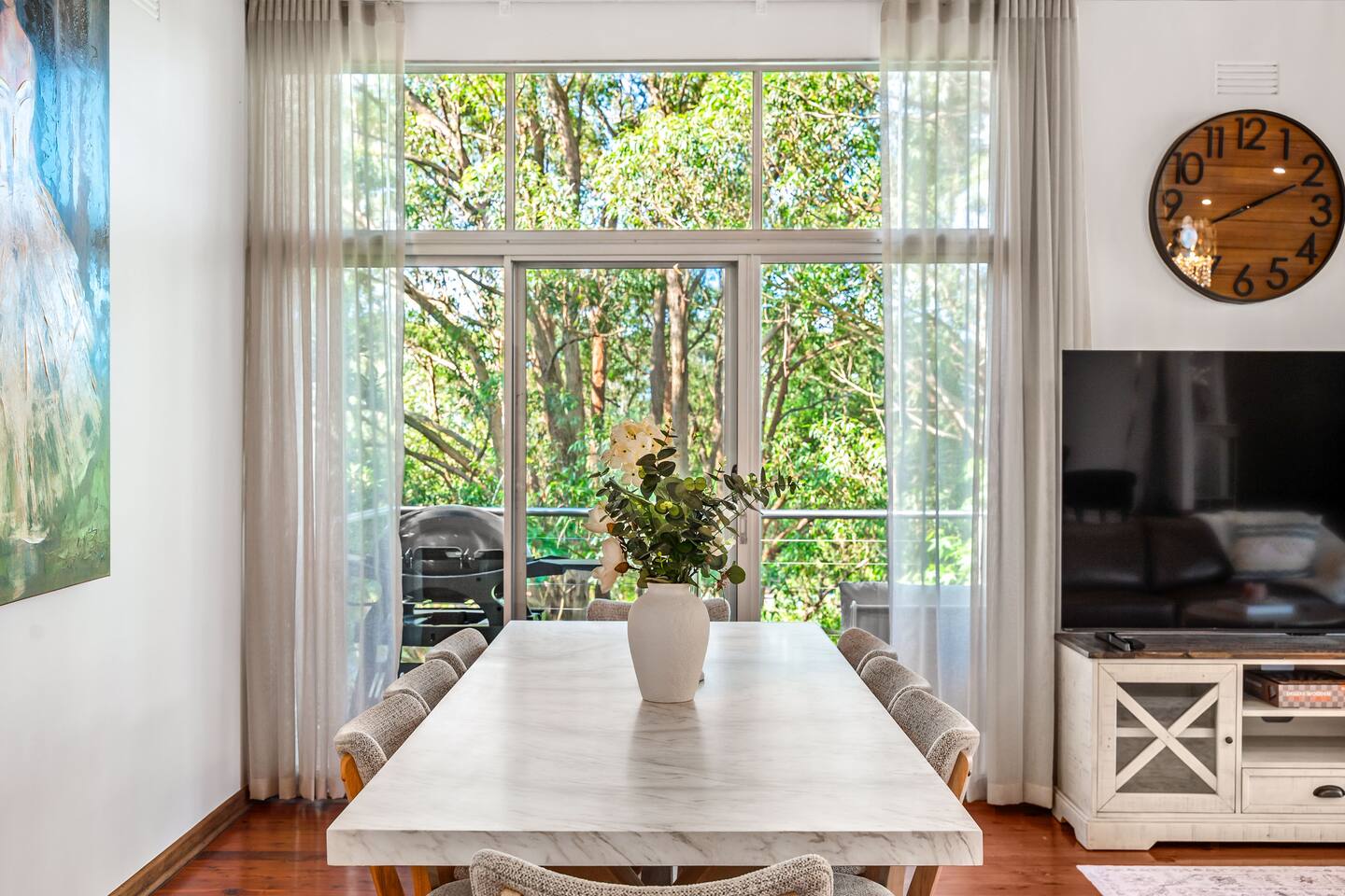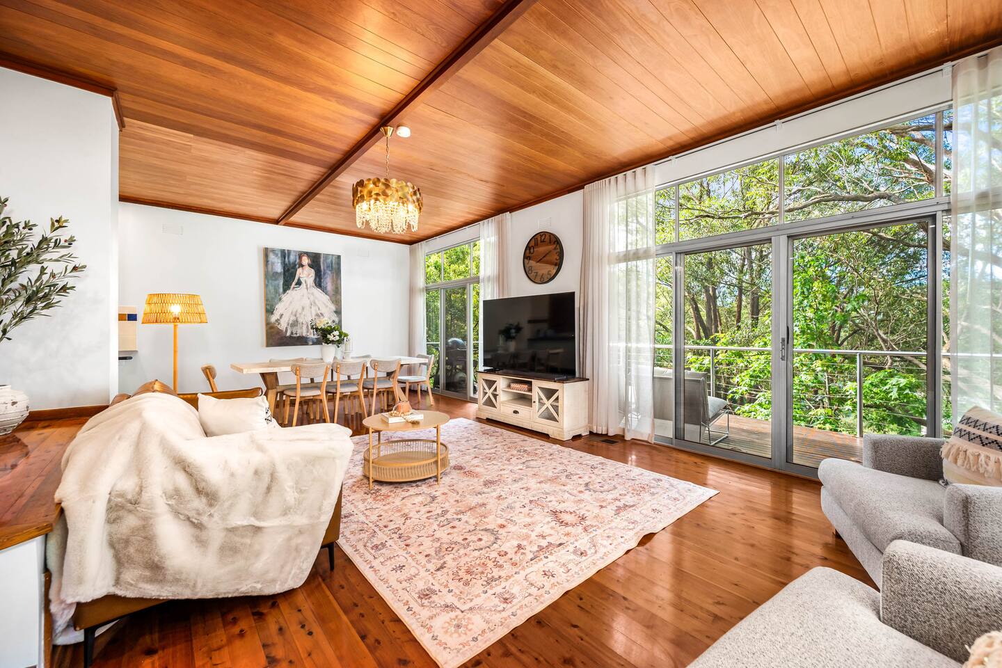 Bower House is a peaceful treetop retreat in Merewether Heights. Surrounded by bushland yet just minutes from the beach, it features floor-to-ceiling glass overlooking the canopy, beautiful furnishings, and a calm, relaxed atmosphere. Perfect for families or friends wanting a private, light-filled escape close to Newcastle’s beaches, cafés, and coastal walks.