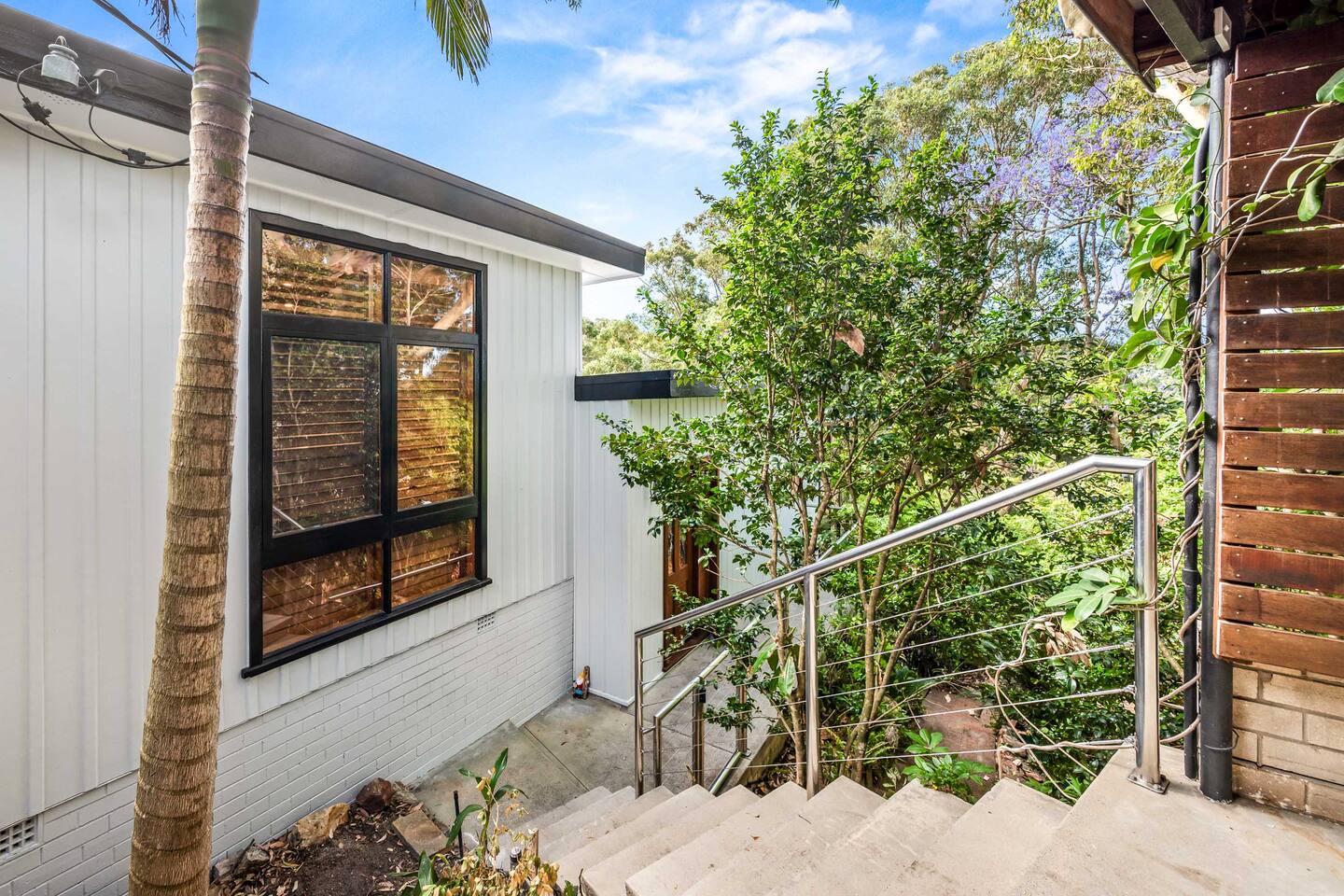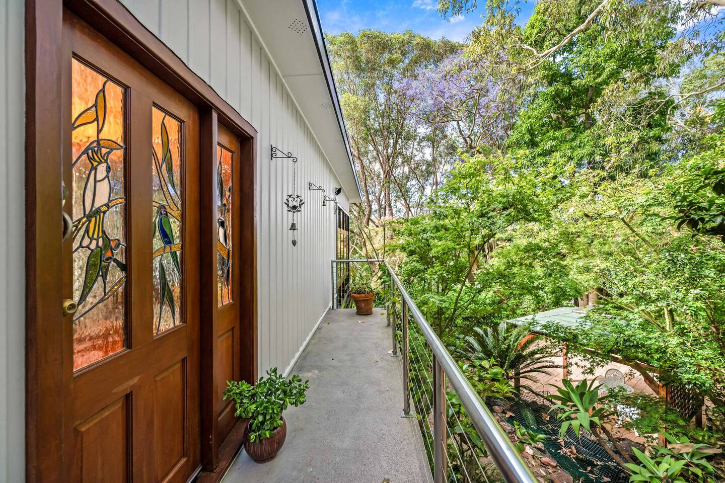 Bower House is set on a steep block with a driveway and internal stairs. While it is a peaceful and comfortable home, it may not be suitable for guests with mobility issues. Families with crawling babies or young children should ensure they are supervised at all times, as the property has stairs, deck edges, and a sloping driveway. Pets are not allowed on the property.