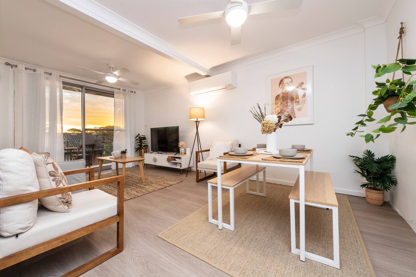 Enjoy the coastal styling that creates a serene and inviting atmosphere throughout the apartment. The main bedroom features a queen bed, while the second room has a bunk bed with a double at the bottom and a single on top, perfect for children. Casa Amor sleeps 5. The main bedroom features a queen bed, while the second room has a bunk bed with a double at the bottom and a single on top. Prepare meals with ease in the well-equipped kitchen, complete with cooking essentials, tea and coffee. The bathroom includes a separate toilet, shower and a combined washer/dryer for your convenience. Best Bits: - Short walk to Bar, Dixon Park & Merewether beaches - Anzac memorial walk and coastal walks on your doorstep - Close to vibrant cafes and restaurants - Short drive to Newcastle CBD - Walk to The Junction's & Darby Street's restaurants - Sleeps 5 across two bedrooms - Comfortable air conditioned living room - Ceiling and wall fans - Fully equipped kitchen with cooking essentials - Linen, basic cleaning supplies, and toiletries provided - Free on-street parking Casa Amor, meaning "House of Love," is your perfect base for exploring the beauty of Merewether & Newcastle. Book now and create unforgettable memories! Guests must climb stairs to enter the apartment, no suitable for those with mobility issues. No parties, schoolies or guests under 21.
