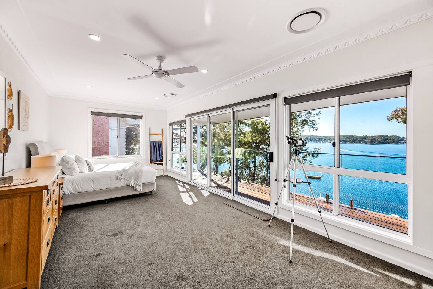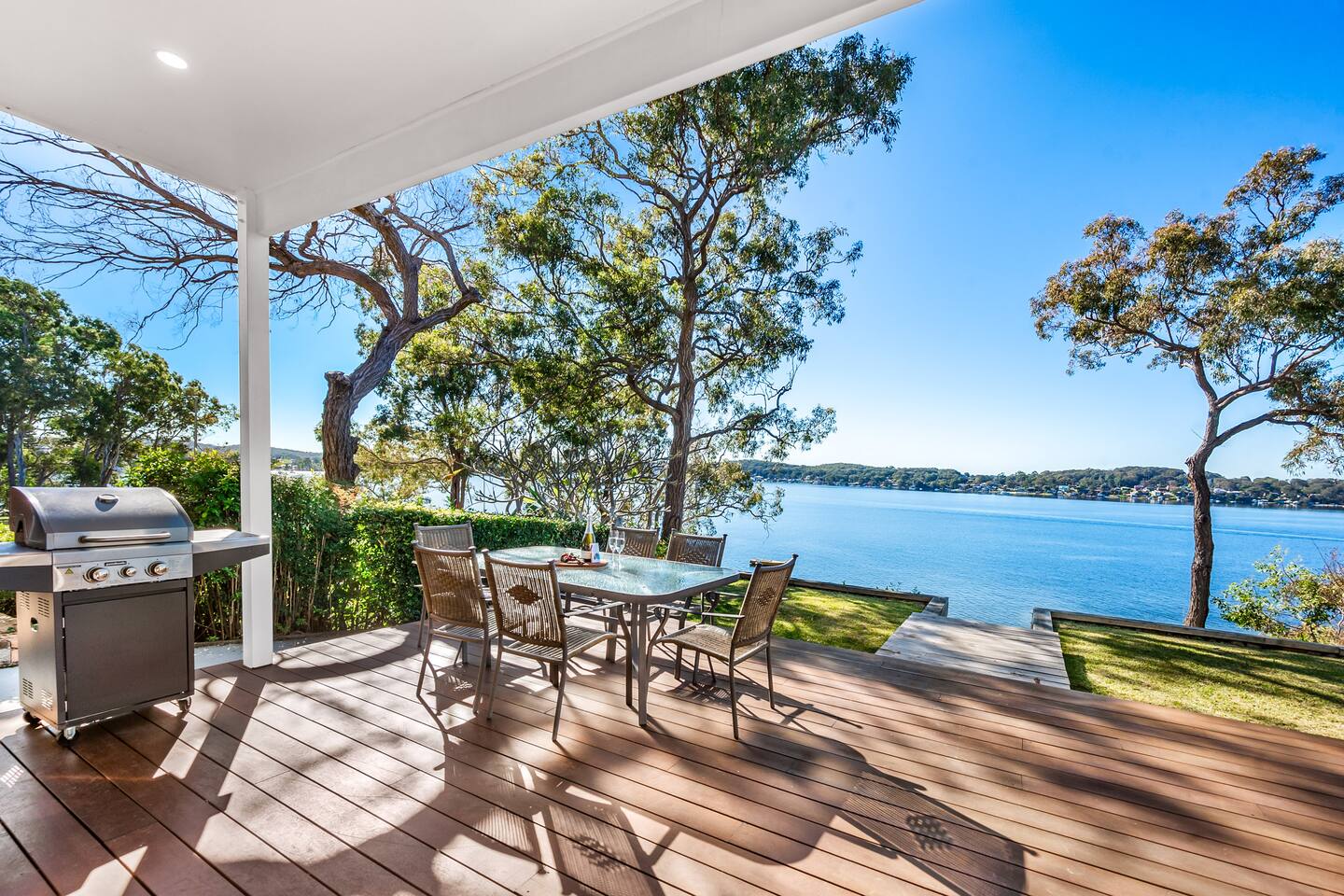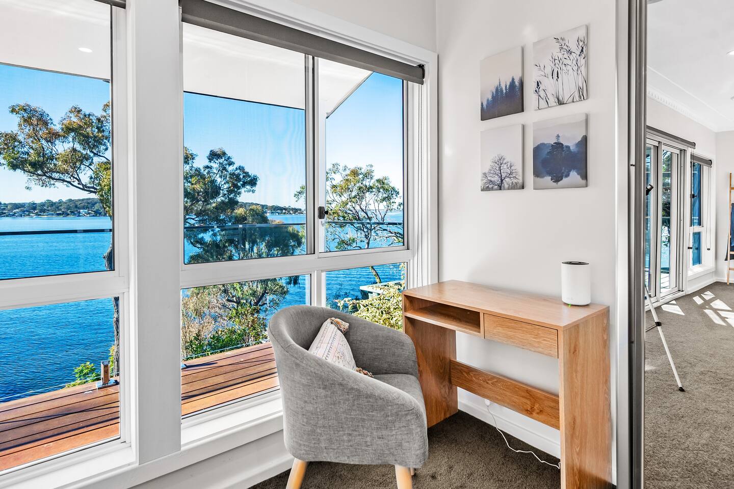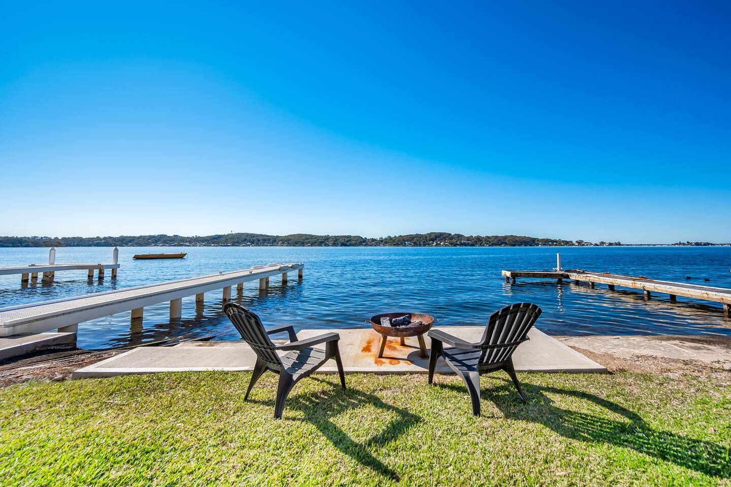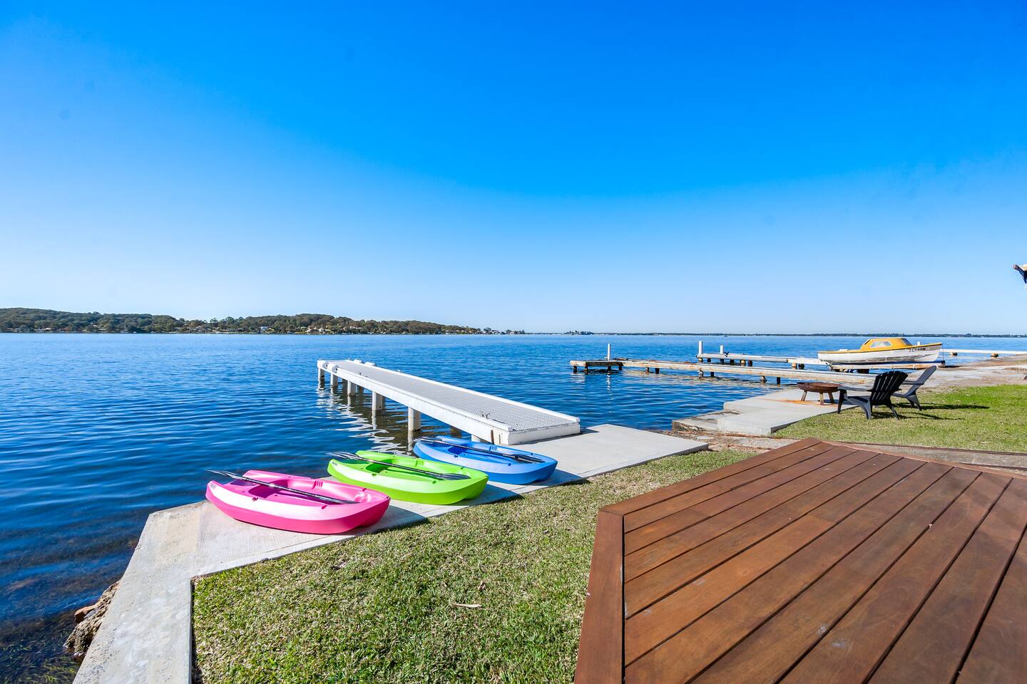 The main house features three spacious bedrooms, while two self-contained studios each come with their own bathrooms. The main bedroom boasts an ensuite and breathtaking lake views. With four bathrooms, a modern kitchen, and open-plan living areas, this home is perfect for multiple families or larger groups seeking a luxurious getaway. The property sits high above the lake, with stairs leading down to the water level where you'll find a boathouse equipped with kayaks and life vests (use at your own risk), a kitchenette, and seating that overlooks the private jetty. Enjoy swimming and fishing right off the jetty. Catalina Bay is fully equipped with quality cotton linen, soaps, towels, and all the essential cleaning and cooking basics. Located in the charming Fishing Point area, you're just a short drive away from the shops and the vibrant communities of Wangi and Toronto, where you'll find pubs, restaurants, cafes, and supermarkets. Best Bits: - Absolute waterfront property at Fishing Point on Lake Macquarie - Spectacular lake views from the main bedroom and living areas - 5 bedrooms: 4 with queen beds and 1 with single bunks, a single bed, and a trundle - Two of the queen bedrooms are self-contained studios attached to the house, each with their own bathroom - 4 bathrooms, including an ensuite in the main bedroom - Modern kitchen and open-plan living areas - Outdoor dining with BBQ, Fire Pit, guests to provide their own fire wood - Boathouse at water level with kayaks (child and adult), stand up paddle board, life vests, kitchenette, and seating area - Private jetty for swimming and fishing - Quality cotton linen, soaps, towels, and essential cleaning and cooking supplies provided - Sleeps 12 guests - Baby items, including a travel cot and high chair, available with advance notice (bring your own linen for the cot) - Perfect for multiple families or larger groups - Conveniently located near shops and a short drive to - - Wangi and Toronto with pubs, restaurants, cafes, and supermarkets Book your stay at Catalina Bay today and create unforgettable memories by the lake! We do not accept bucks or parties; please respect our neighbours. Guests must climb stairs. Beach towels not provided. Registration number PID-STRA-67517