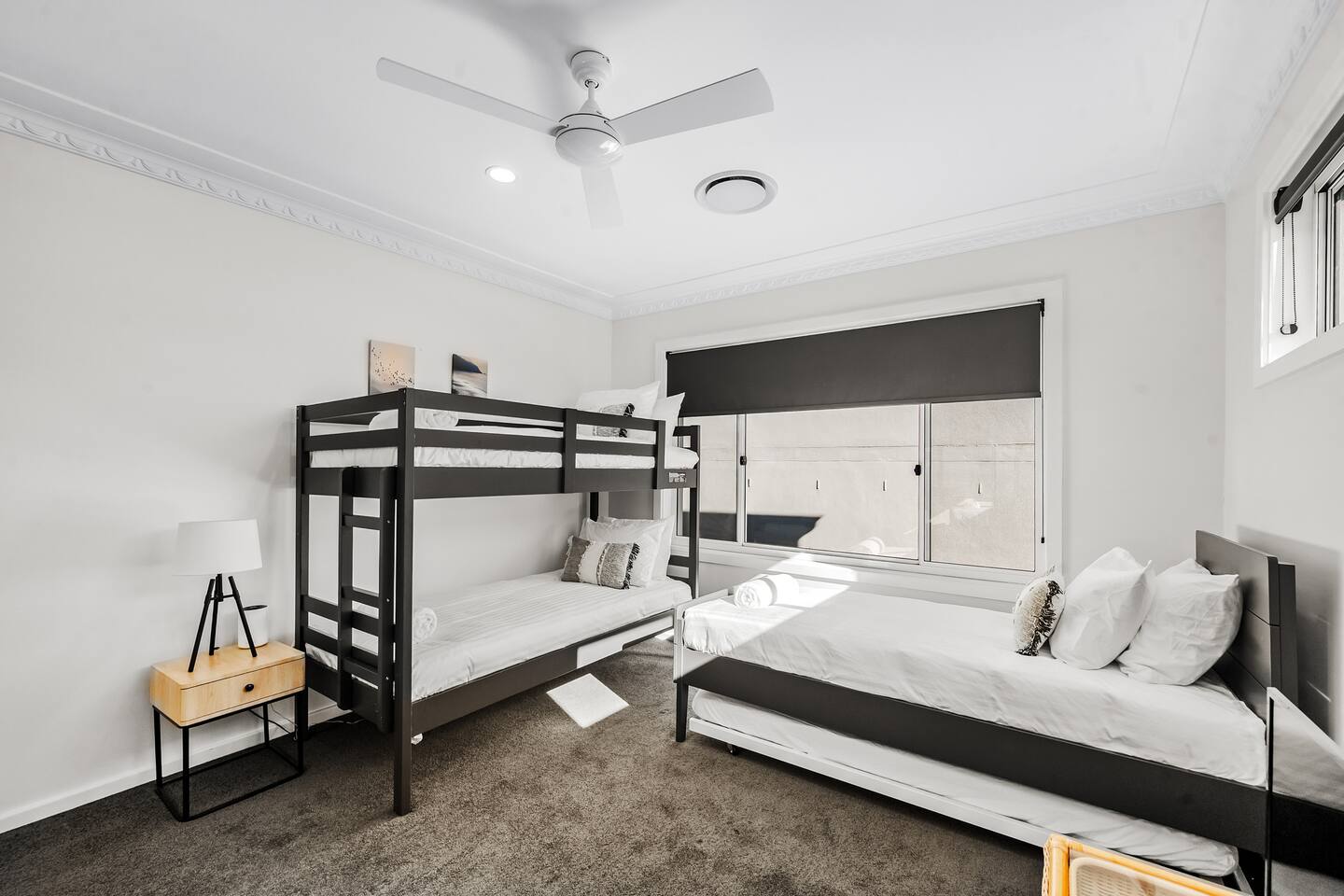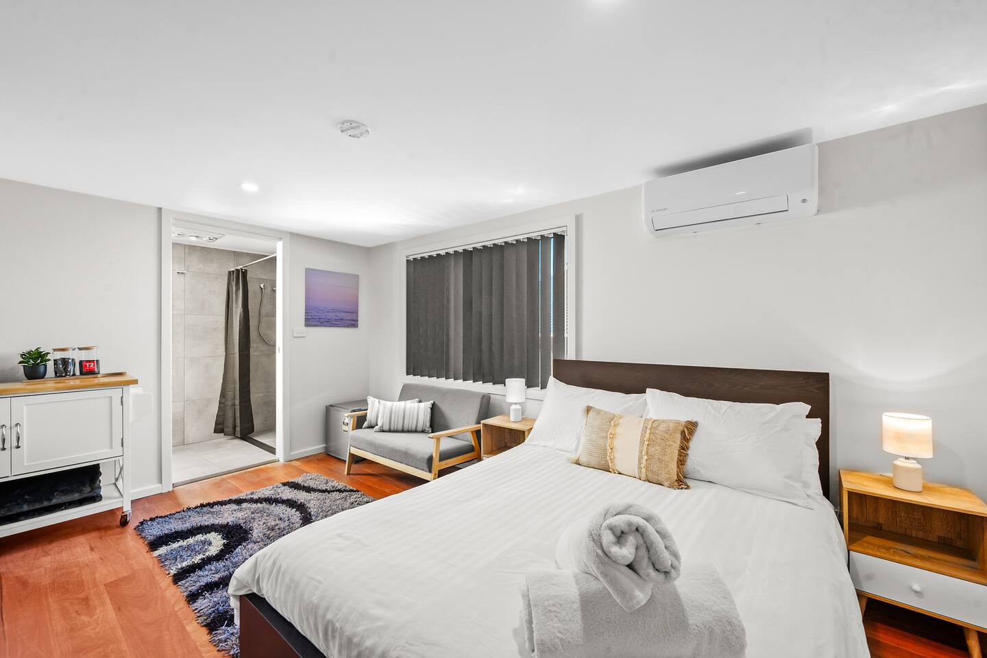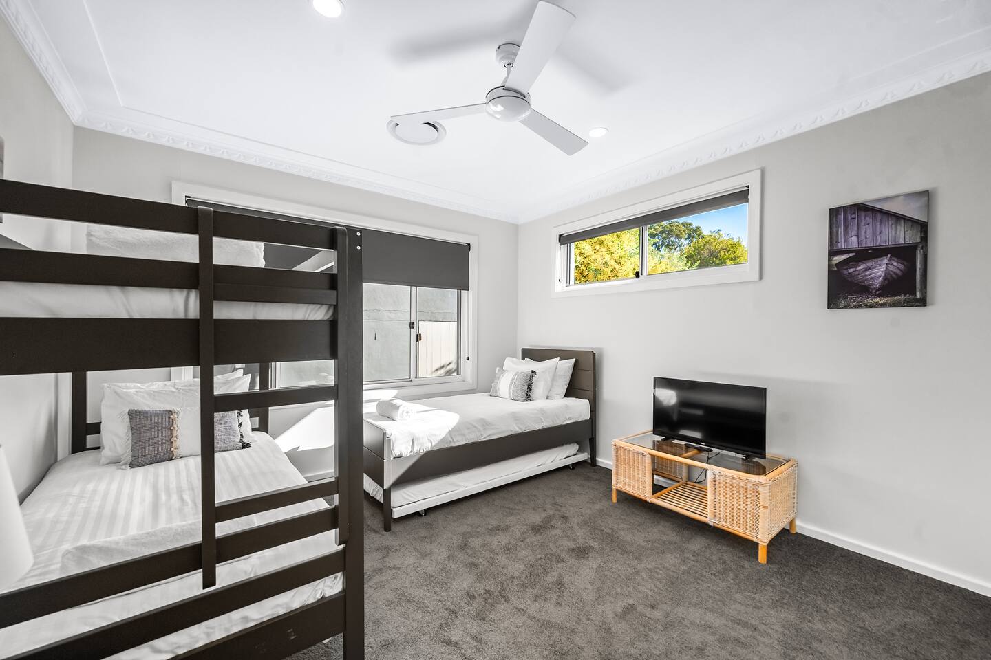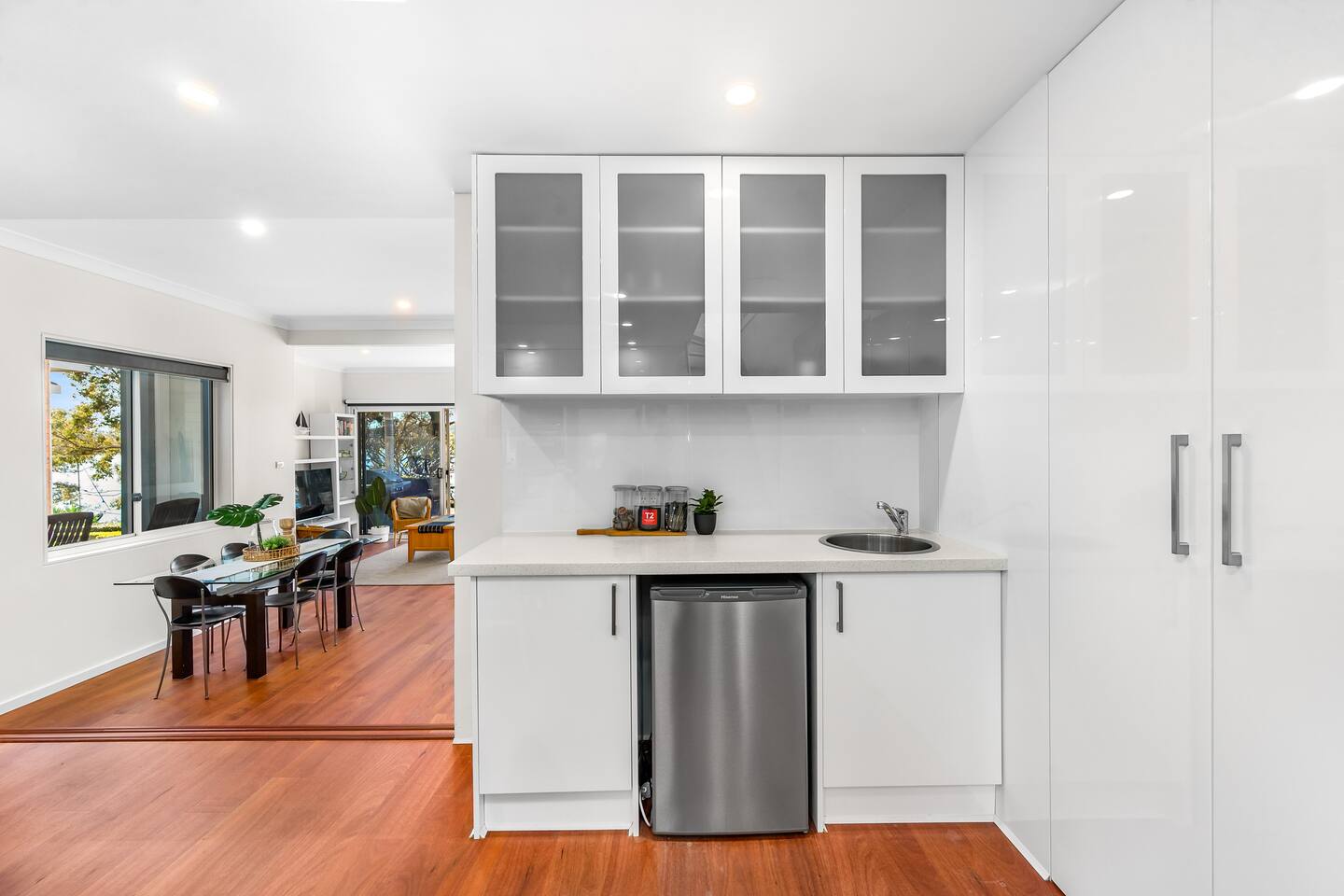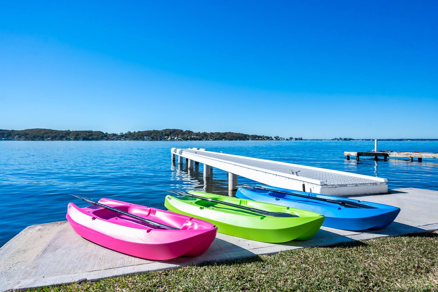 The main house features three spacious bedrooms, while two self-contained studios each come with their own bathrooms. The main bedroom boasts an ensuite and breathtaking lake views. With four bathrooms, a modern kitchen, and open-plan living areas, this home is perfect for multiple families or larger groups seeking a luxurious getaway. The property sits high above the lake, with stairs leading down to the water level where you'll find a boathouse equipped with kayaks and life vests (use at your own risk), a kitchenette, and seating that overlooks the private jetty. Enjoy swimming and fishing right off the jetty. Catalina Bay is fully equipped with quality cotton linen, soaps, towels, and all the essential cleaning and cooking basics. Located in the charming Fishing Point area, you're just a short drive away from the shops and the vibrant communities of Wangi and Toronto, where you'll find pubs, restaurants, cafes, and supermarkets. Best Bits: - Absolute waterfront property at Fishing Point on Lake Macquarie - Spectacular lake views from the main bedroom and living areas - 5 bedrooms: 4 with queen beds and 1 with single bunks, a single bed, and a trundle - Two of the queen bedrooms are self-contained studios attached to the house, each with their own bathroom - 4 bathrooms, including an ensuite in the main bedroom - Modern kitchen and open-plan living areas - Outdoor dining with BBQ, Fire Pit, guests to provide their own fire wood - Boathouse at water level with kayaks (child and adult), stand up paddle board, life vests, kitchenette, and seating area - Private jetty for swimming and fishing - Quality cotton linen, soaps, towels, and essential cleaning and cooking supplies provided - Sleeps 12 guests - Baby items, including a travel cot and high chair, available with advance notice (bring your own linen for the cot) - Perfect for multiple families or larger groups - Conveniently located near shops and a short drive to - - Wangi and Toronto with pubs, restaurants, cafes, and supermarkets Book your stay at Catalina Bay today and create unforgettable memories by the lake! We do not accept bucks or parties; please respect our neighbours. Guests must climb stairs. Beach towels not provided. Registration number PID-STRA-67517
