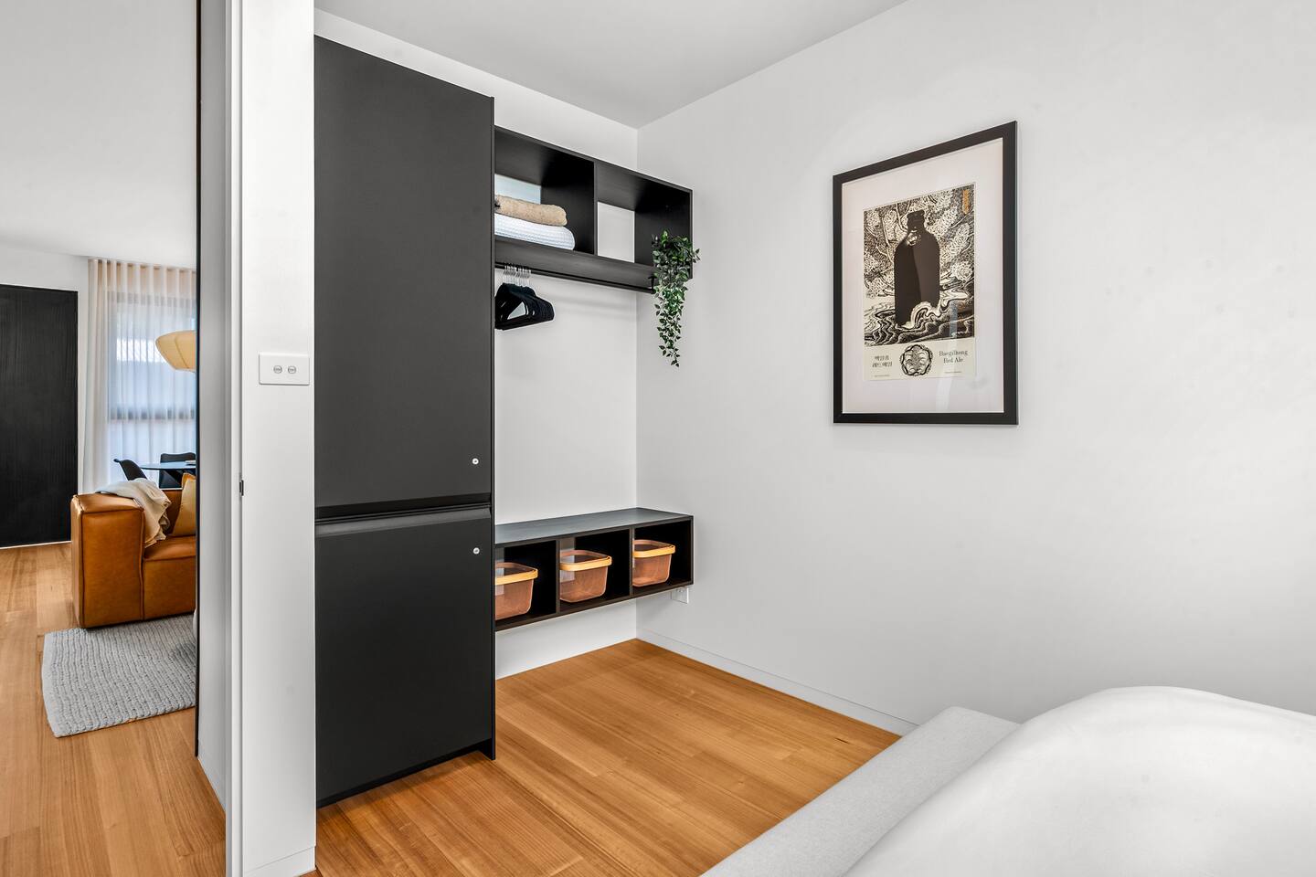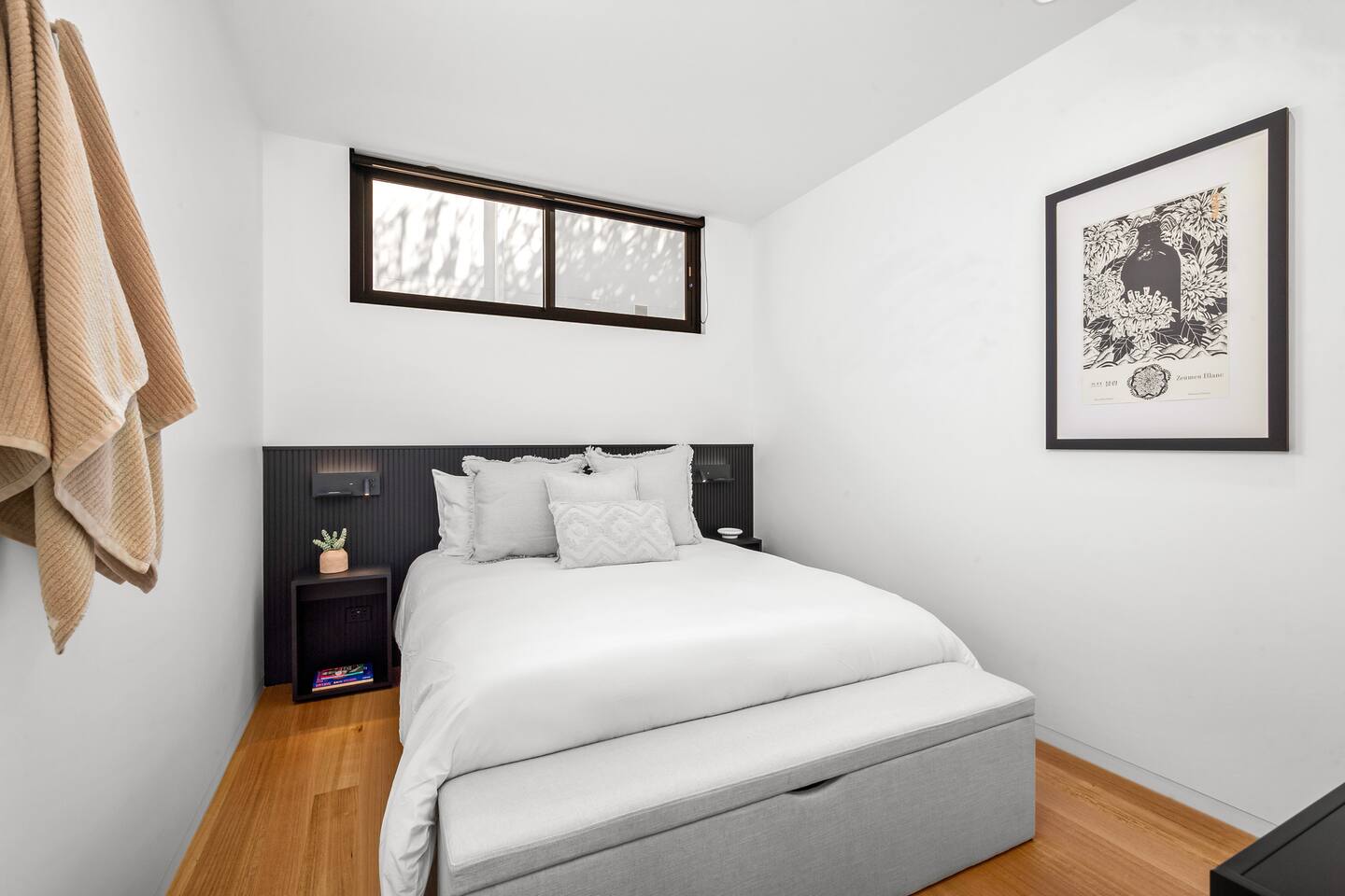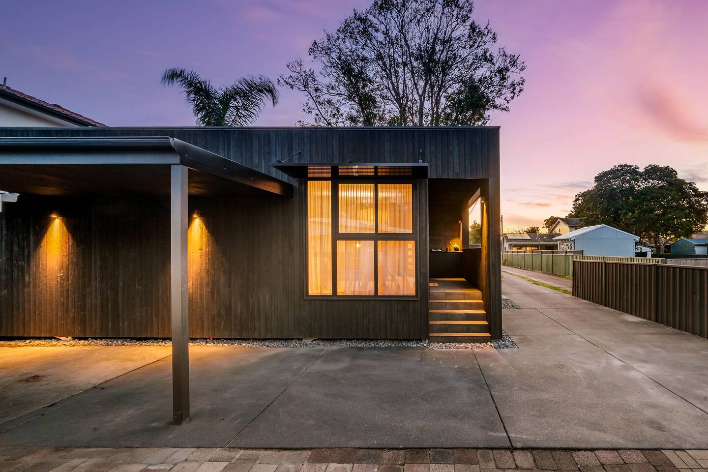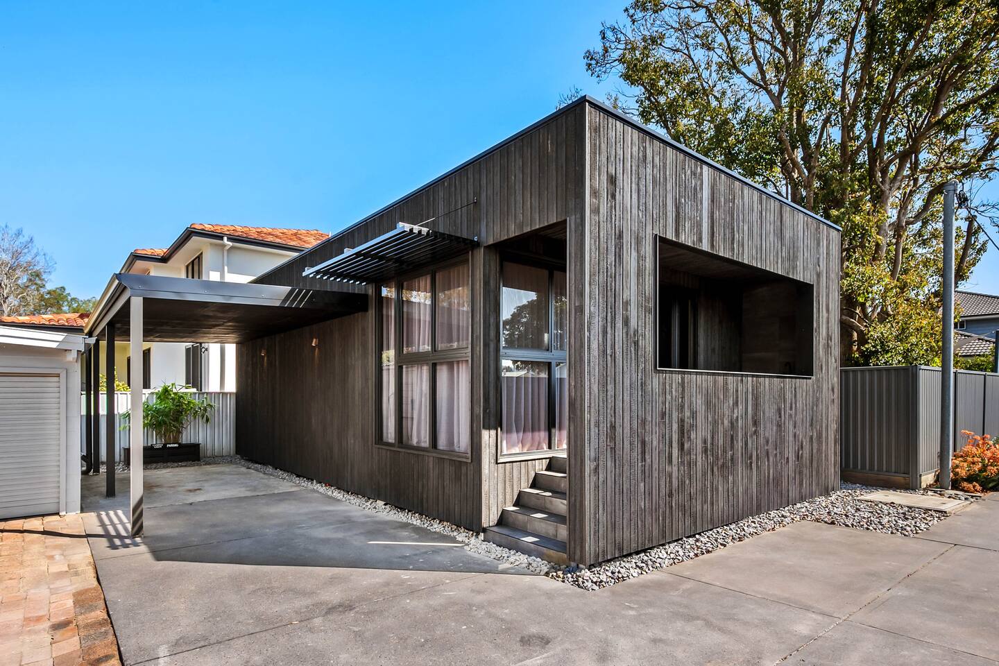 The Charred Cabin is a striking fusion of Japanese aesthetic and modern comfort. Its exterior features Shou Sugi Ban cladding, a Japanese technique that charred timber with fire, enhancing both its sustainability and unique appeal. Inside, you'll find two cozy queen-sized bedrooms with open wardrobes, ensuring a restful night's sleep. The fully-equipped kitchen includes a dishwasher, oven, microwave, fridge, freezer, and cooking essentials such as oil, salt, and pepper. Meal preparation is a breeze here. The bathroom is a highlight, with a double shower, stylish vanity, and abundant natural light streaming in through skylights. While there's no dryer, a clothes airer and clothes line is provided for your convenience. Charred Cabin offers a designated carport for your vehicle, along with free street parking. Additionally, there's another house on the same block that can be booked alongside Charred Cabin, making it perfect for larger groups or families. The cabin's proximity to Lake Macquarie means you're just minutes away from lakeside walks, bike rides, and boating adventures. The tranquil surroundings of Warners Bay provide a perfect backdrop for relaxation and exploration. Privacy blinds have been installed in the living area July 2024. To make your stay seamless, Charred Cabin includes all bed linen and towels. Pack light and immerse yourself in the charm of this unique Japanese-inspired retreat. Book your stay today and experience the best of both worlds - modern comfort with a touch of Japanese elegance, all within reach of the stunning Lake Macquarie. Best Bits: - Bedrooms: Two cozy queen-sized bedrooms with open wardrobes. - Kitchen: Fully-equipped kitchen with a dishwasher, oven, microwave, fridge, freezer, and provided cooking essentials (oil, salt, pepper). - Bathroom: Striking double shower and vanity, bathed in natural light from skylights. - Parking: Designated carport for your convenience, with additional free street parking. - Laundry: European laundry with a washing machine (no dryer, but a clothes airer and washing line is available). - Design: Japanese-inspired Shou Sugi Ban cladding on the exterior, creating a unique and sustainable aesthetic. - Location: Just a few minutes' walk to the edge of Lake Macquarie, perfect for walks, bike riding, and boating. - Inclusions: All bed linen and towels are provided for a hassle-free stay. - Additional Accommodation: There's another house on the same block that can be booked alongside Charred Cabin for larger groups or families. - Charred Cabin is not suitable for crawling babies and toddlers up to 5 years old. Registration number PID-STRA-56067