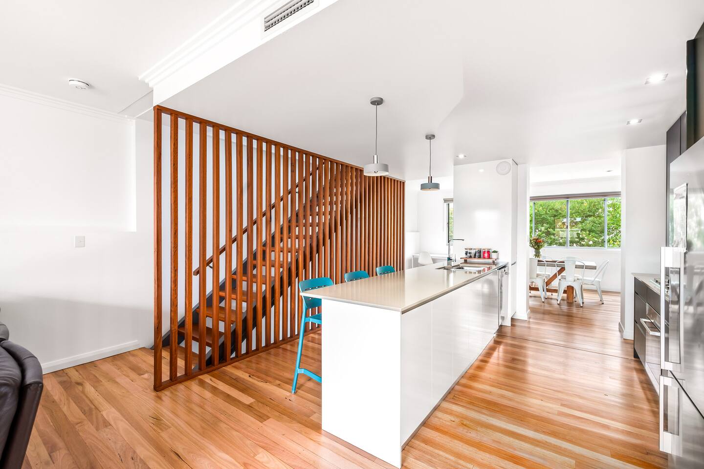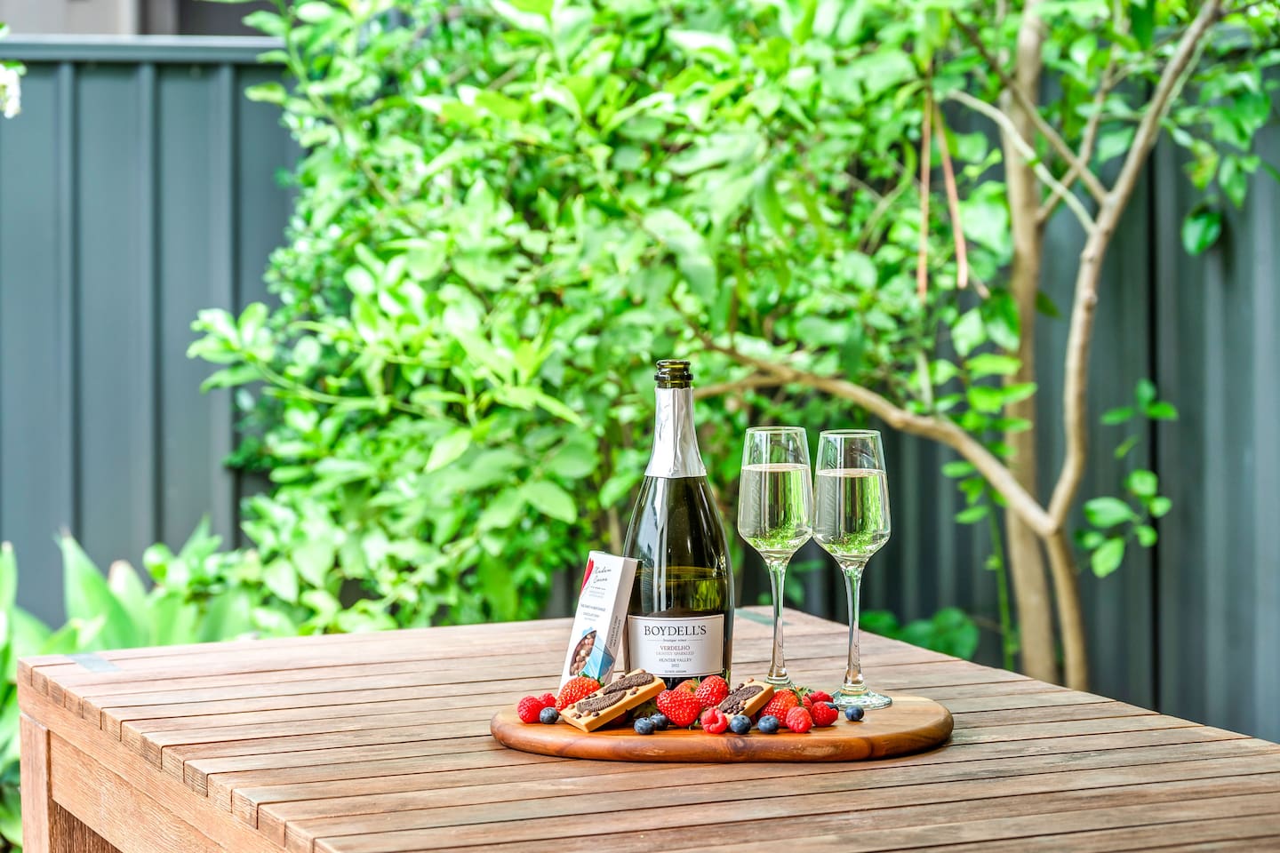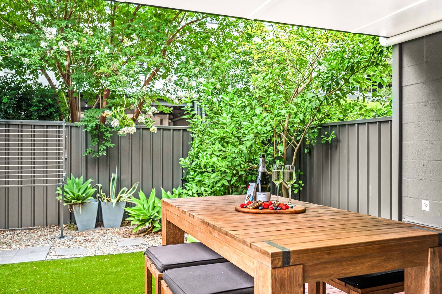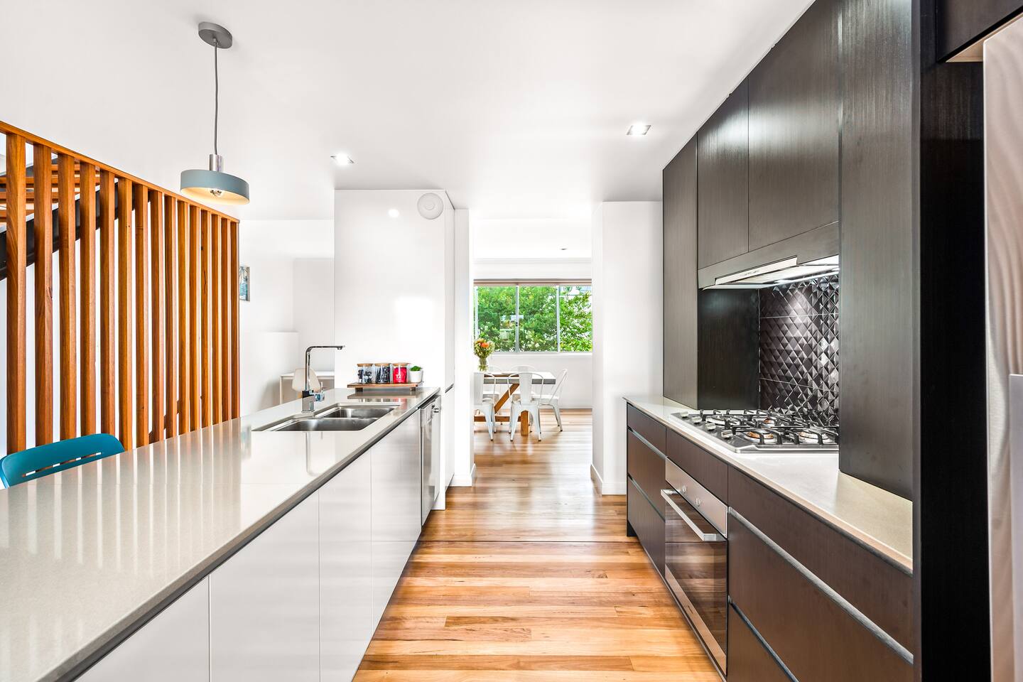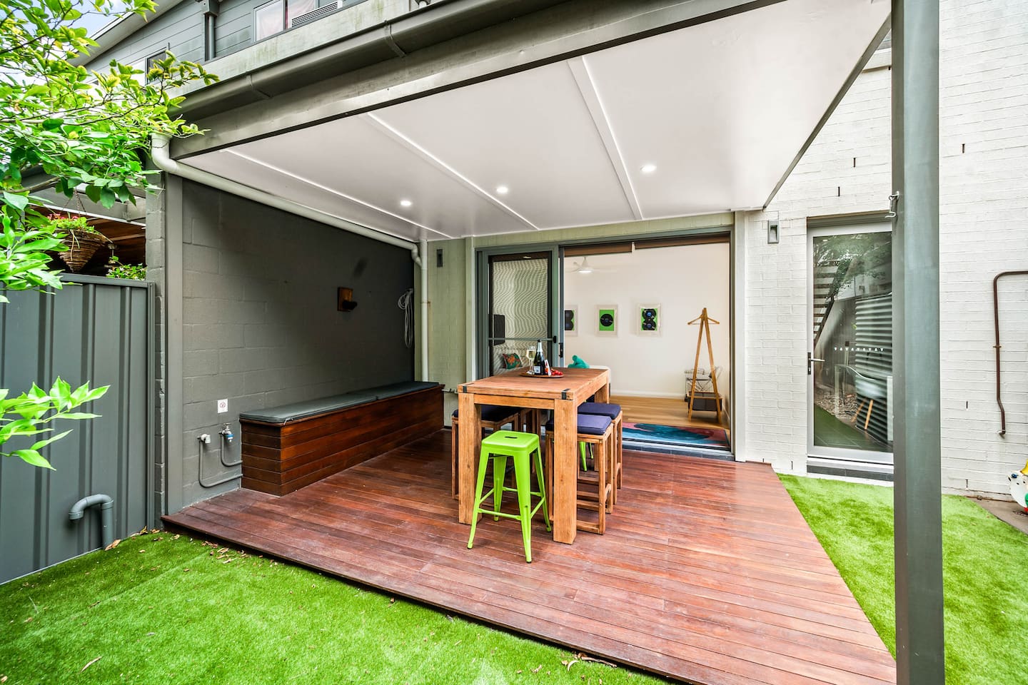 Main (1st) Level →Fully stocked kitchen with microwave, refrigerator, Miele dishwasher, nespresso machine and stove/oven →Pots/pans/dishes/glassware/cutlery, tea, sugar, spices, oil →60" UHD LED Smart TV, NBN internet →Leather lounge →Dining table to seat 8 →Fold-down futon (suits 1 adult or 2 children SINGLE) →Front veranda with chairs and bistro dining set 2nd level → Master Bedroom (king bed) with ensuite (shower, double sinks), walk-in closet →2nd Bedroom (queen bed) with built-in desk space →Bathroom with shower over tub, double sinks →Reading nook Ground level → Bedroom with Queen bed → Bathroom with shower → Washing machine (covered outdoor clothes line/drying rack) → Private covered outdoor back garden with table set seating 6 Note Garage is NOT available to guests