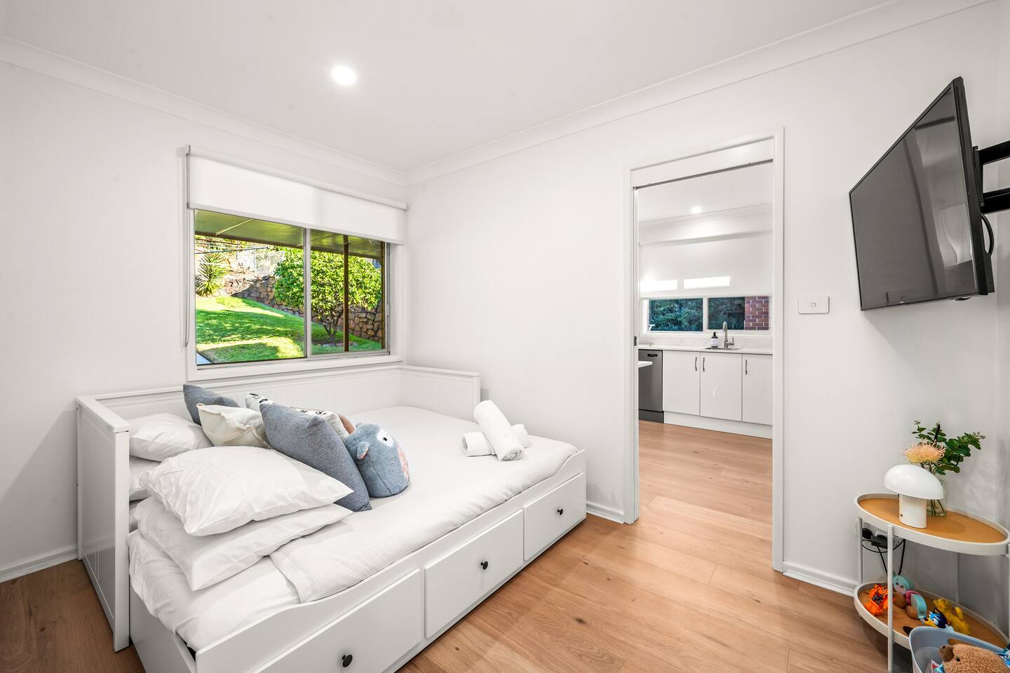 Step inside Hillview, managed by The FAM Holiday Property Management in Newcastle. With leafy district views towards Newcastle City Hall, this contemporary four-bedroom home is perfect for families, groups, trips with friends or anyone wanting to enjoy the best of city living while still having room to relax. Inside, you’ll find a light-filled living area with a large chaise lounge, smart TV, split system air-conditioning and a dedicated workstation, plus a dining space with seating for eight. Seamlessly connected with high-speed Wi-Fi throughout the property. Whether you're here to relax, explore or work we have got your tech needs covered. The fully equipped kitchen has everything you need to prepare meals, including a Nespresso coffee maker, dishwasher and quality appliances. Step outside to enjoy multiple outdoor areas, from the front balcony with lounge seating to the rear patio and terraced backyard complete with a BBQ and outdoor setting for four, great for laid-back alfresco meals. The bedrooms are thoughtfully designed for comfort, with ceiling fans and built-ins in 3 of the rooms. The main bedroom features a queen bed, and leafy views, while two bedrooms include double beds with garden outlooks. The fourth bedroom has a versatile day bed that converts to a double, with an additional smart TV and a thoughtful selection of toys and games for the whole family to enjoy. The home also includes a stylish bathroom with a walk in shower, bathtub, two separate toilets, an additional hand basin and a full laundry with laundry tub, washing machine and dryer for convenience. Practicality is covered with an internally accessed double garage and extra off-street parking providing parking for up to 4 cars. Hillview isn’t just family-friendly, it’s pet(dog) friendly too! With secure outdoor areas, nearby parks, and plenty of space to stretch out, Hillview makes it easy to relax, work and play together. Best Bits - Prime location above the city, walk everywhere - 4 bedrooms + 1.5 bathrooms, perfect for families and groups - Multiple outdoor spaces with leafy district views - Air-conditioning, ceiling fans, smart TV, high-speed Wi-Fi and workstation - Stylish, well-equipped kitchen with Nespresso machine - Cooking and cleaning basics are provided including organic tea & Nespresso pods - All linen, towels and beach towels provided - Soaps, shampoo and conditioner provided - Double garage + extra driveway - parking for up to 4 cars - Pet-friendly Location Highlights - Hillview’s position is one of its biggest drawcards. From the front door, it’s just: - 500m to Darby Street’s cafes, bars, and boutique shops - 5 minutes’ walk to King Edward Park and Obelisk - 10 minutes’ walk to Newcastle Beach and Art Deco inspired Ocean Baths - 10 minutes’ walk to Anzac Memorial Walk - 10 minutes’ walk to Nesca Park inclusive of dog-off leash area - 12 minutes’ walk to Newcastle Civic Theatre - 15 minutes’ walk to Newcastle Museum, Hunter Street Mall, and the Light Rail - 15 minutes’ walk to Bogey Hole-Australia’s Oldest Ocean Pool - 20 minutes’ walk to Newcastle Foreshore Precinct With space, style and one of the best locations in Newcastle, Hillview is your perfect base to explore the city, coastline, and beyond. Please refer to house rules for booking conditions.