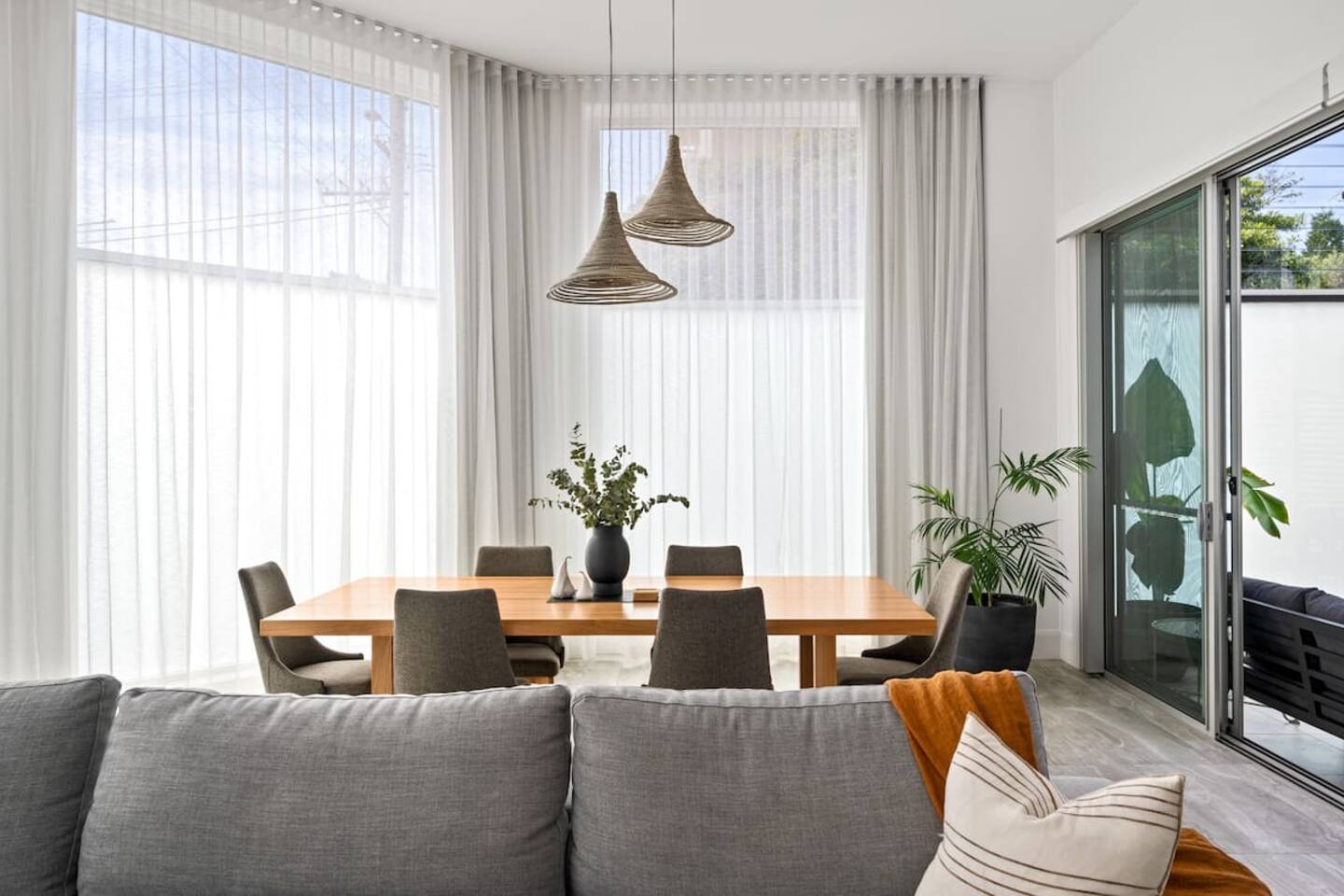 The property is located on a tree lined street only a short walk from parks, shops, pubs and cafes. The light filled dual level townhome has everything you need for an enjoyable and comfortable stay. Downstairs there is a huge open plan living area with chefs kitchen, atrium courtyard with outdoor dining, office space, oversized lounge, laundry, powder room and secure double tandem garage with internal access. Upstairs you will find three large bedrooms, two with queen beds and the main with a King and ensuite. Large family bathroom with bath tub and second lounge area. The entire space is generous and has plenty for a group of 6 guests. It is perfect for families, couples or work colleagues travelling together but still wanting their own privacy. Features - Free off street parking for two cars in the secure lockup garage with internal access. 2.9 m clearance. - Three bedrooms. King with ensuite and two Queens. - 2.5 bathrooms with bath tub. - Laundry with washing machine and dryer. - Kitchen with quality inclusions. Fridge, freezer, dishwasher, coffee machine, oven, stove, cookware, crockery, cutlery, basic cooking and cleaning essentials provided. - Private office space with desk. - High quality linen and white fluffy towels. - Quality toiletries, coffee pods, T2 tea and thoughtful extras. Please note there is zoned ducted air conditioning throughout the property, this system is to be used upstairs or downstairs however not at the same time.