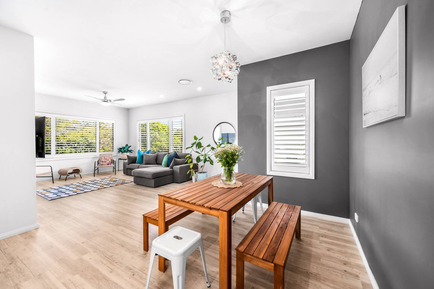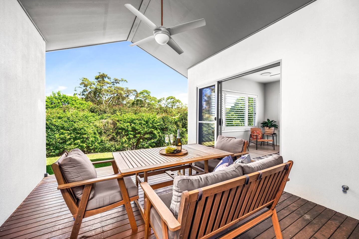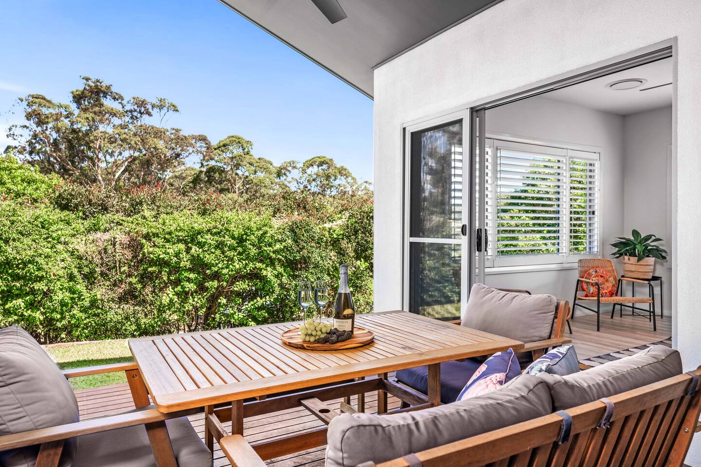 Escape to the tranquility of Jacaranda, a peaceful retreat nestled on the edge of bushland near the famous Fernleigh Track. Situated on a quiet street this three bedroom, two bathroom home offers a serene and spacious stay for families, friends or workgroups.