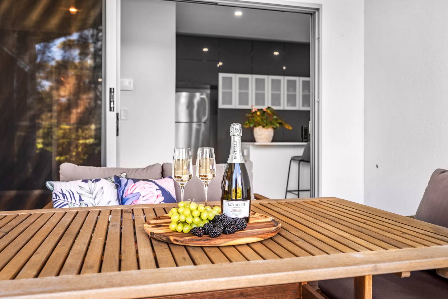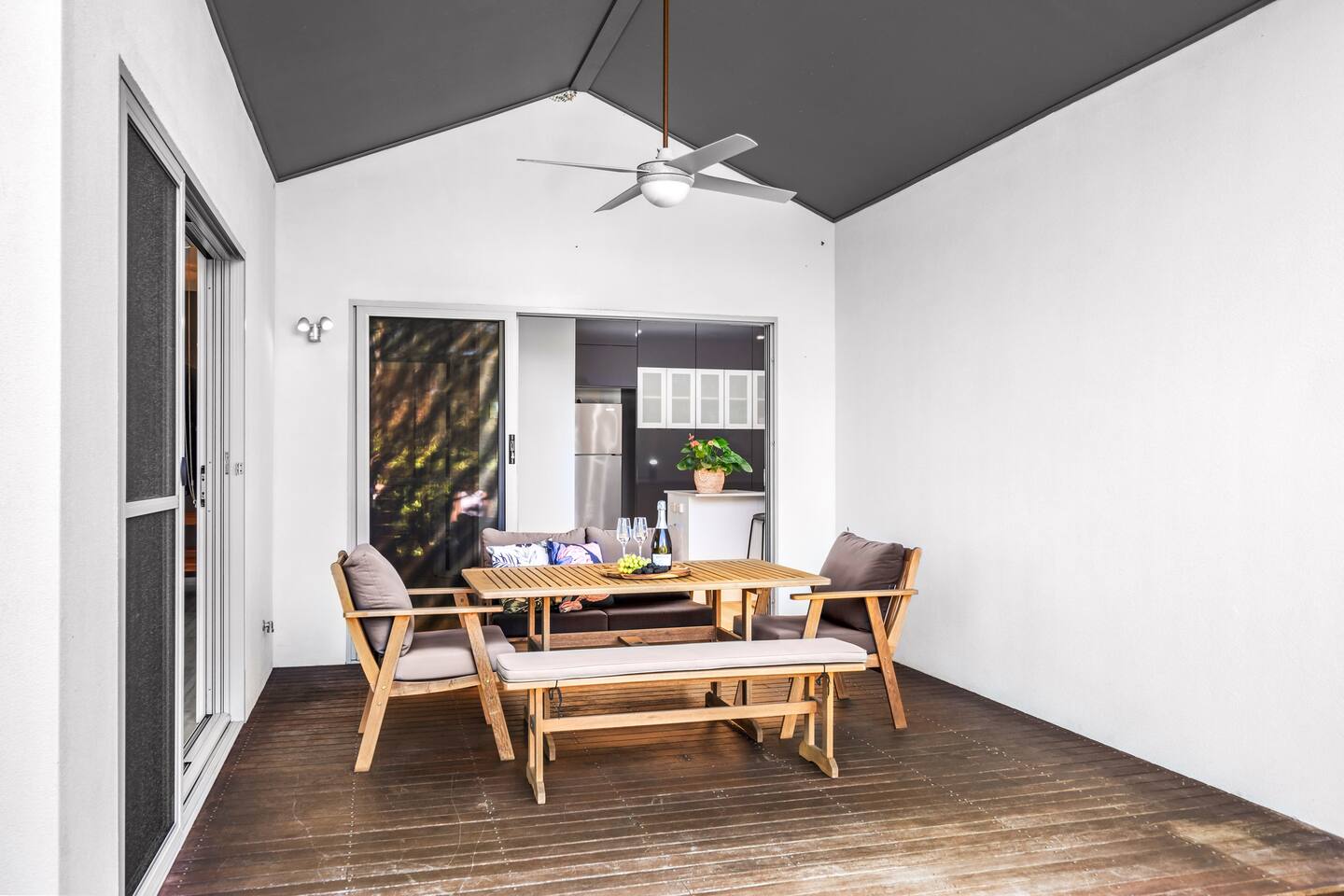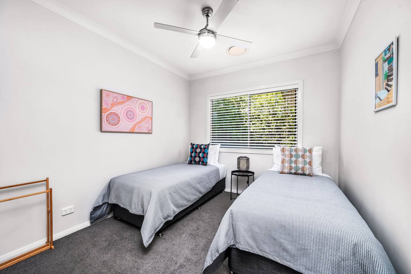 Escape to the tranquility of Jacaranda, a peaceful retreat nestled on the edge of bushland near the famous Fernleigh Track. Situated on a quiet street this three bedroom, two bathroom home offers a serene and spacious stay for families, friends or workgroups.