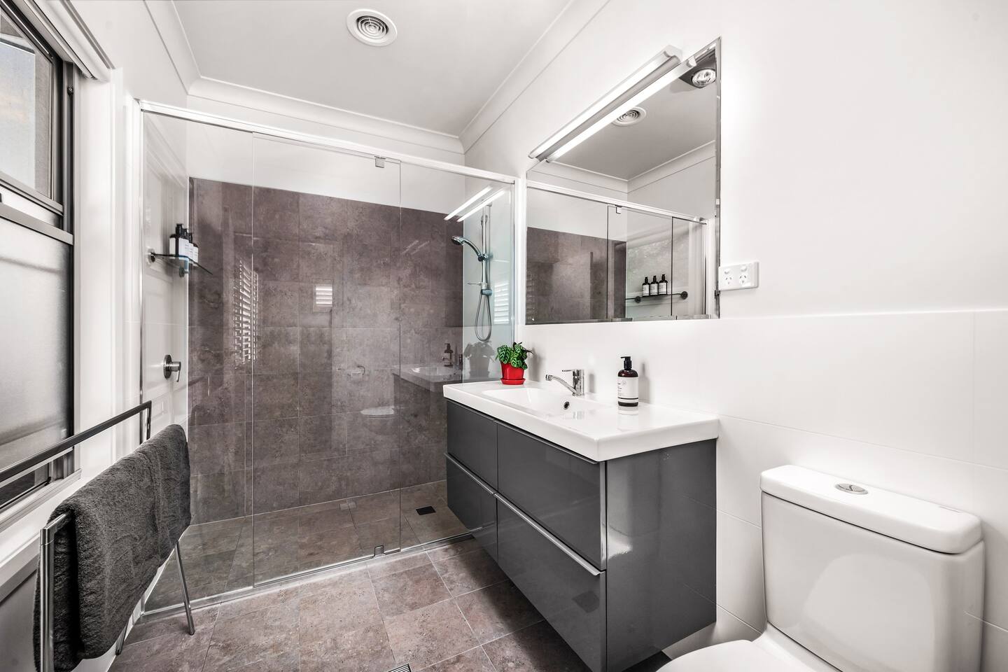 The bedrooms are furnished to suit groups of all sizes. The main bedroom has a comfortable queen bed and ensuite. The second bedroom has a double bed, while the third room includes two extra-long single beds, perfect for adults or taller children. All bedrooms come with quality linen and towels. The house features two lounge rooms, fully equipped kitchen with a breakfast bar and dining area for shared meals. Two decks offer peaceful spaces to enjoy the natural surroundings. There’s also a double secure garage with internal access and a laundry for your convenience. For those travelling with infants we can provide a travel cot and highchair, guests must bring their own linen for the cot. These items must be requested in advance before your arrival. Conveniently located just 10 minutes from Newcastle CBD, Eucalypt is moments from the famous Fernleigh Track and five minutes to Glenrock Conservation Area for mountain biking and bushwalking. Coffee shops in Whitebridge and Charlestown Square’s shops are nearby, with Dudley and Redhead Beaches just a short drive away. Best Bits - 3 bedrooms, sleeping up to 6 guests - 2 bathrooms - 2 living areas, with dining and breakfast bench - 2 smart TV's & WIFI - Fully equiped kitchen - Ducted cooling and heating - Baby items on request, including travel cot and high chair - Close to Glenrock, Fernleigh Track, Beaches, Charlestown and Newcastle CBD - All linen, towels, cooking and cleaning essentials are provided Jacaranda combines natural beauty with convenience, making it the perfect base to explore Newcastle and its stunning surroundings. Whether you're here for work, adventure, or relaxation, this home has everything you need for a memorable stay.