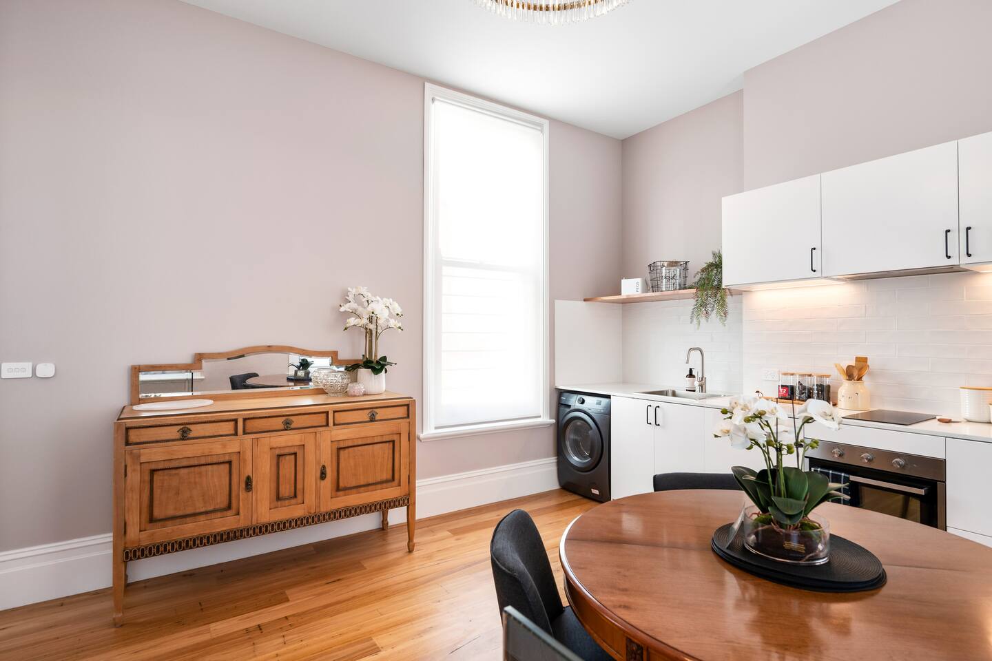 Bask in the flawless charm and elegance of Macquarie House, a heritage-listed gem in the heart of Newcastle's historic The Hill Heritage Conservation Area. Built in 1905, this stately home has been meticulously restored to reflect the character of Victorian Italianate architecture while incorporating modern luxuries. Ideally located near Newcastle Beach, this two-storey apartment combines historical charm with modern splendour. The apartment features two well-appointed queen bedrooms, with ceiling fans. One has an ensuite with a shower, while the other is next to the main bathroom with a shower, bath and an original vanity. High-quality bed linens and towels ensure a restful night's sleep and sumptuous experience. The spacious living and dining areas are tastefully furnished with high-quality pieces, There is a large TV with free-to-air and streaming services, and 4-seater dining table. The kitchen is fully equipped, including an oven and stove top, dishwasher and washer/dryer. There are games and a range of books of interest available. There is air conditioning and gas heating. The apartment has a warm water outdoor shower at the rear of the property, heated towel rails and underfloor heating in both bathrooms. Situated near numerous restaurants, bars and cafes, Macquarie House places you in the vibrant heart of Newcastle. Yet the solid construction of the heritage building offers a serene and peaceful space for living. Discover the extensive coastal walking paths and tracks north and south, offering stunning views and invigorating walks. Newcastle has 6 beaches and Macquarie House is in walking distance to 3 of them, with the remainder an easy short drive away. The apartment is an easy 5-minute stroll King Edward Park and also to the Newcastle Beach tram stop, making it easy to explore the city. Parking Information: Bolton Street Parking Garage: Complimentary parking is included with your booking for one car. The garage is located just a 2-minute walk from our front door and is accessible 24/7. Please provide your number plate when booking to ensure access. The garage has a height limit of 2.2 meters. It is unallocated, so you can park in any space and enjoy unlimited entries and exits during your stay. Additional Parking Options: Watt Street: Free all-day parking is available 100 meters away. This parking is first-come, first-served. Street Parking: Free on weekends and overnight in front of the apartment. This parking is also first-come, first-served. Loading Zones: There is a loading zone around the corner on Church Street and another directly across from the apartment entrance for convenient unloading. Highlights - Heritage-listed gem: Experience Victorian Italianate architecture, meticulously restored with every attention to detail. - Complimentary parking for one car. - Sleeps up to 6 guests. 2 queen bedroom plus a queen sofa bed in the living room. Please advise us if you will be using the sofa bed. - Prime location: In Newcastle's historic The Hill Heritage Conservation Area, steps from Newcastle Beach and CBD. - Luxurious furnishings: High-quality linens and elegant decor ensure a sumptuous stay. - Modern amenities: Two-storey apartment with two queen bedrooms, one ensuite and a main bathroom with bath. Air conditioning, ceiling fans and gas heating. - Convenient access: Close to restaurants, bars, cafes, and coastal walking tracks. Walking distance to Newcastle Beach tram stop, located in the CBD. - Enjoy a complimentary welcome pack including tea, coffee, sugar, milk, soap, laundry and dishwashing supplies. - Parking options: Free all-day parking on Watt Street, free street parking next to the apartment on weekends and overnight, and a nearby parking garage on Bolton Street. Local points of interest - 100m to Newcastle beach - 100m to the Ravella 48 Watt St function space - 200m to Newcastle Grammar School - 300m Christ Church Cathedral and or Cathedral Park - 400m to FoodWorks independent supermarket - 500m to Woolworths Newcastle East - 500m to Foreshore Park - 500m to King Edward Park - 750m to QT rooftop bar and restaurant - 800m to Queens Wharf Hotel - 1km to Kingsley’s bar and restaurants - 1 km to Civic Theatre - 1km to Nobby’s Beach and lighthouse - 2km to Bar beach - 3km to Merewether beach - 2 min drive to Honeysuckle District or jump on the light rail at the bottom of Watt St - 10min drive to Newcastle Racecourse - 10min drive to McDonald Jones Stadium - 10min drive to Newcastle Entertainment Centre - 30min drive from Newcastle Airport - 120min drive to Sydney CBD (Driving times are an approximate depending on the time of day you are travelling) Restaurants within a 5-minute walk The Grand Hotel, The Humble Thai, Good Brother Espresso, Bolton Street Pantry, Lock’s Paddock, Customs House, East End Hub, Humbug, One Penny Black, Bocados Spanish Kitchen, Una Volta, Xtraction Espresso, Rustica Newcastle Beach, Rosina’s Pizza Restaurant (BYO), Estabar, The Falcon Restaurant, The Grain Store, The Great Northern Hotel. PID-STRA-66932