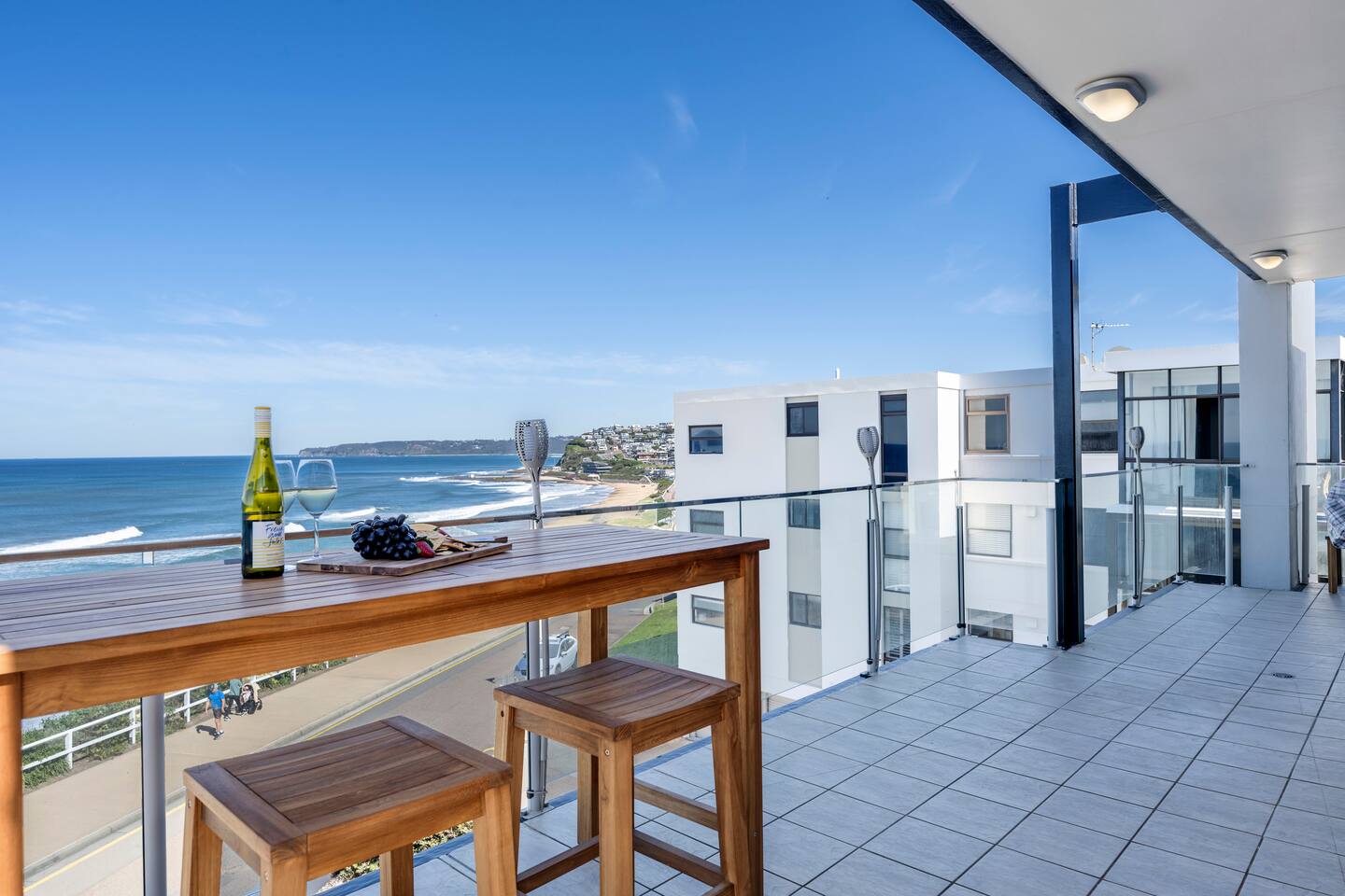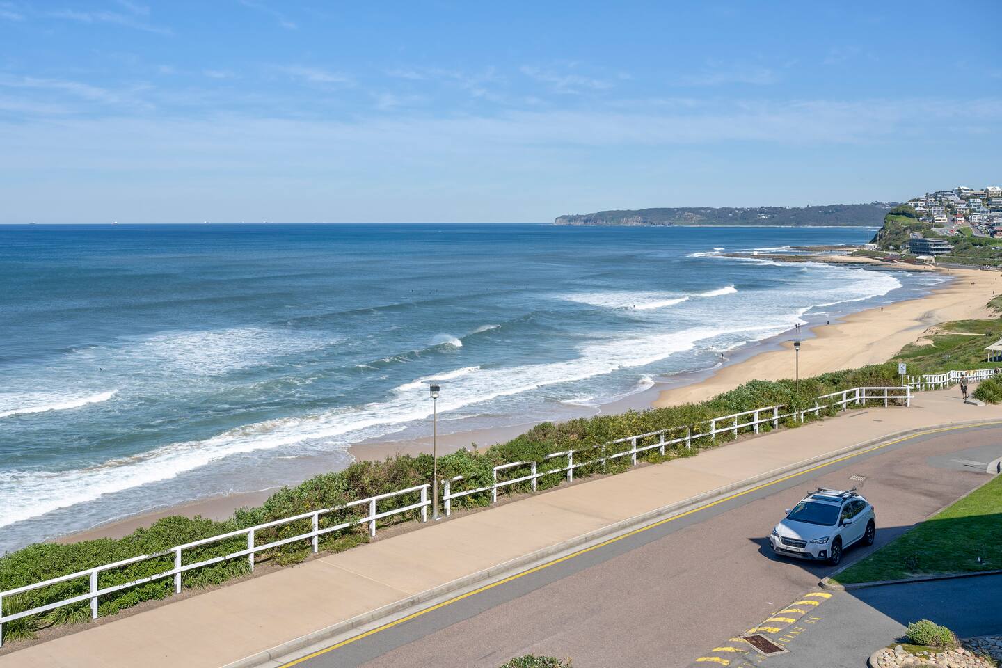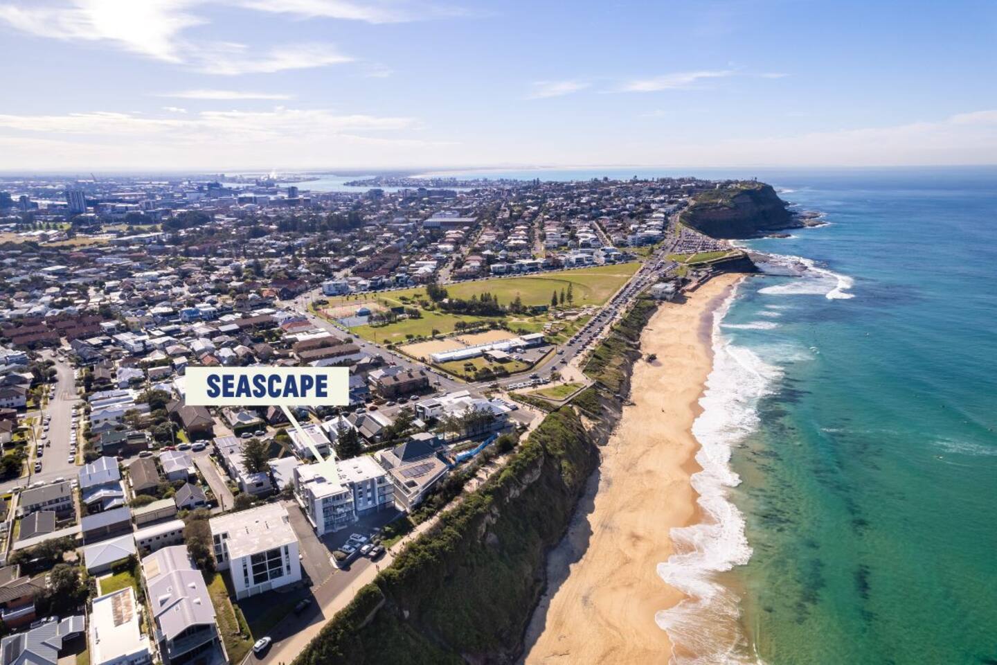 Seascape comfortably sleeps four guests across two bedrooms. The front room with queen bed has extensive views of the ocean while the second bedroom has a double bed and city views. Open plan living is key at Seascape, relax in front of the Samsung Smart 65inch TV on the leather lounge or enjoy a meal in the dining area. The kitchen has everything you need including stove, oven, fridge, microwave, Nespresso coffee machine, crockery and glassware. We provide cooking basics like oil, salt, pepper, tea and coffee. There is a renovated bathroom with walk in shower and separate laundry with washer and dryer. Freshly renovated with brand new appliances and furnishings to enjoy the spectacular view. Stay comfortable all year round with reverse cycle air conditioning in every room. Outside enjoy the balcony with outdoor dining. Seascape is located between Bar and Dixon Park Beach, absolute beachfront with stunning views of the ocean and city from every room. There are two balconies which take in the sunrise over the ocean and the sunset over the city. Enjoy walking the bathers way walking track that passes by the apartment. You can walk all the way into Newcastle via the Anzac Memorial Walk or head to Merewether Baths and onto Glenrock Lagoon. There is free visitor, driveway and street parking available to guests. Parking is first come first served however there are quite a few visitor spaces and street parking in front of the apartments and more parking further down the road. We hope you enjoy our apartment! FEATURES: - Full kitchen - Washing machine and dryer - Air conditioning in all rooms - Open plan living & dining - Deck with outdoor dining - Linen and towels provided - Games selection for indoor nights - Secure building with lift access - Free parking (on the driveway or street) - Travel cot (bring your own linen) - Other baby/child items on request, please ask. Registration number PID-STRA-38237