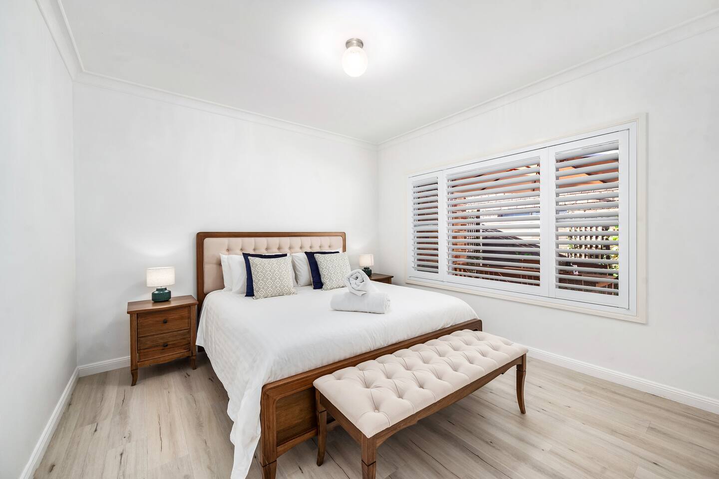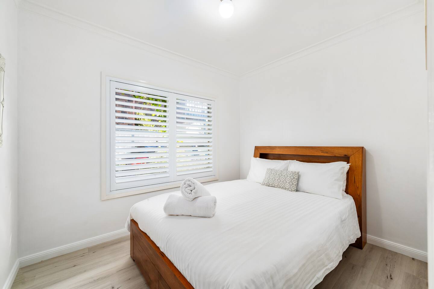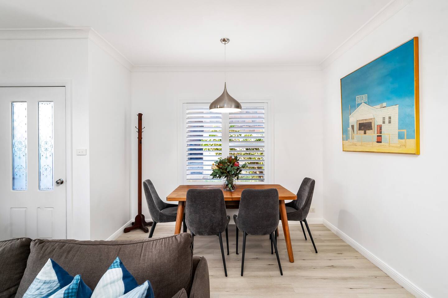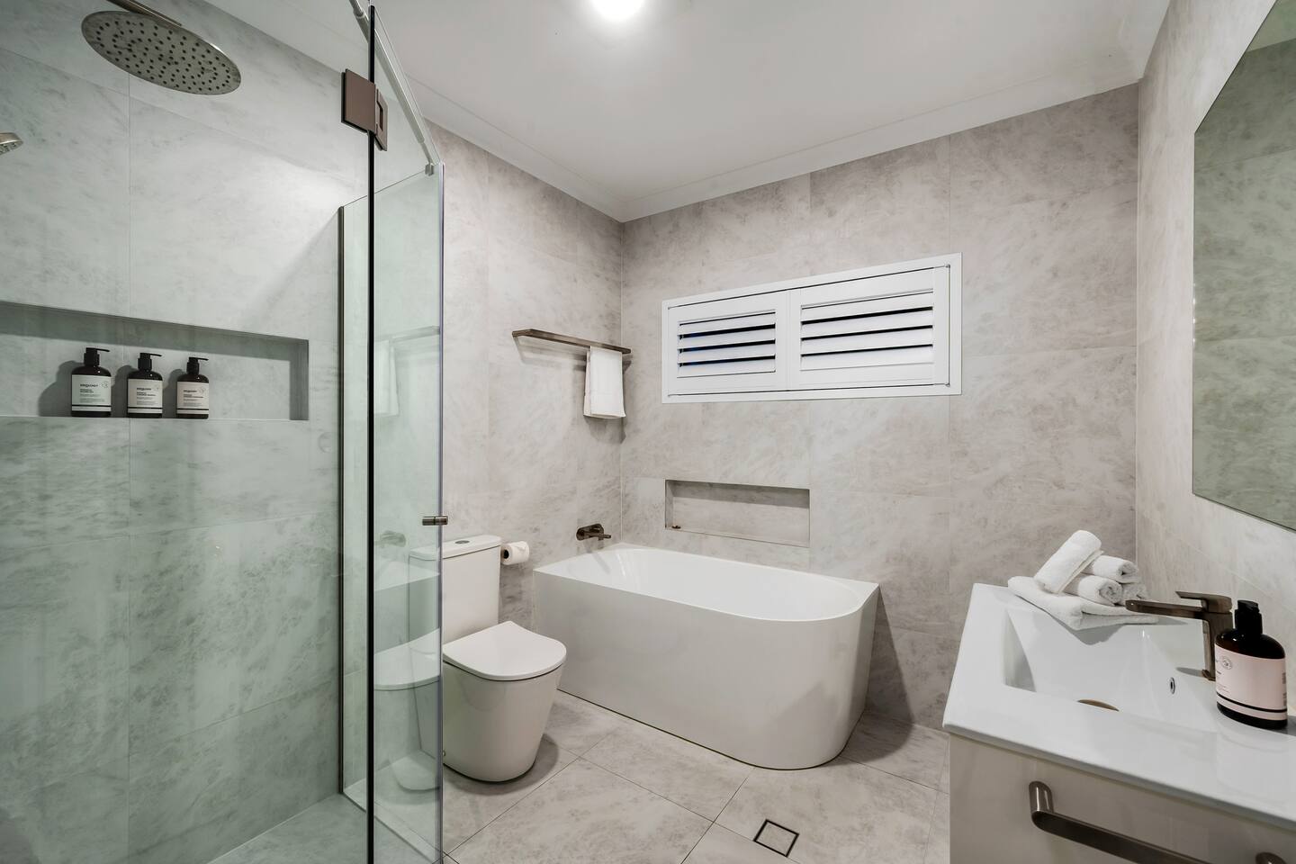 Inside, you'll find three bedrooms furnished with a King bed and two Queen beds, ensuring a restful sleep for up to 6 guests. The large bathroom features a separate shower and bath, complemented by a European laundry conveniently located within the third bedroom. The kitchen is a chef's delight, equipped with a double fridge, induction stove, oven, and a Nespresso machine for your morning coffee fix. Adjacent to the kitchen is a dining area seating 6. For entertainment, there's a Smart TV and a Bluetooth speaker in the living area. Step outside to the private courtyard, complete with an outdoor shower (with hot water), an outdoor dining table shaded by an umbrella, and serene surroundings. Parking is available for one car in the driveway (garage not accessible to guests), and additional free street parking is plentiful. We've taken care of all the details to ensure your comfort: quality linen, towels, tea, coffee, cooking essentials, and toiletries are provided. The Ridge is conveniently located with a bus route right at your doorstep, offering easy access to The Junction, Beaumont Street, Merewether Beaches, Newcastle CBD, and all the attractions Newcastle has to offer. Westfield Kotara is also just a short drive away. Families with babies are welcome, and we can provide a cot and highchair upon request (please bring your own cot linen). Best Bits: - Stylish and Modern: Recently renovated with contemporary furnishings and decor. - Spacious Accommodation: Three bedrooms including a King bed and two Queen beds, accommodating up to 6 guests. - Luxurious Bathroom: Large bathroom with separate shower and bath. - Convenient Laundry: European laundry inside the third bedroom. - Fully Equipped Kitchen: Double fridge, induction stove, oven, and Nespresso machine. - Entertainment: Smart TV and Bluetooth speaker in the living area. - Private Courtyard: Outdoor shower with hot water, dining table with umbrella, and serene surroundings. - Parking: Driveway parking for one car; additional free street parking available. - Location: Close to bus routes, short drive to The Junction, Beaumont Street, Beaches, Newcastle CBD, and Westfield Kotara. - Family Friendly: Baby-friendly amenities available on request (cot and highchair). Perfect for longer stays and work groups seeking their own space, The Ridge provides a comfortable retreat with all the amenities you need. Whether you're visiting Newcastle for work, leisure, or simply exploring the city, book your stay with us and experience the best of Merewether living!