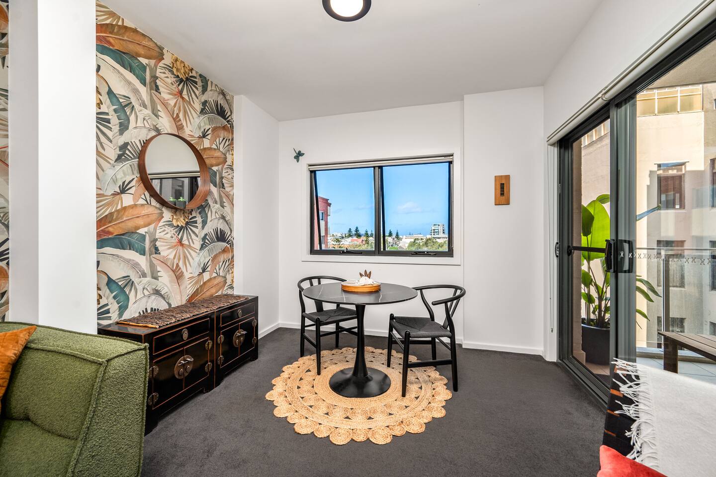 With convenient onsite parking, La Palma offers the perfect base to explore Newcastle's best. Stroll to the famous beaches, wander the harbour foreshore, or immerse yourself in the vibrant dining and bar scene. After a day of adventure, retreat to your private oasis, relax on the balcony, and enjoy the refreshing sea breeze, with glimpses of the sea and harbour. The apartment is thoughtfully designed with style and comfort in mind, featuring all-new furnishings, a plush king bed with luxury bed linen, and a combined living and dining space perfect for unwinding. The fully equipped kitchen includes everything you need to cook up a storm, along with a nespresso coffee machine to start your mornings right - pods provided! The apartment is also stocked with kitchen and bathroom essentials, and all linen and towels are provided for your convenience. For longer stays, the washer/dryer combo ensures you feel at home. Business travelers will appreciate the proximity to the CBD and tram stop, ensuring a seamless blend of work and leisure. Best Bits: - Just steps away from Newcastle’s beaches, harbour, and the buzzing cafe and restaurant scene. - A king-sized bed, high-quality linens, and elegant decor throughout. - Relax with a morning coffee or evening drink while soaking up the sea breeze and glimpses of the harbour and ocean. - Cook with ease and convenience, with all essentials provided. - Onsite parking (2.1m height limit) and close proximity to public transport make getting around a breeze. - Linen, towels, and kitchen and bathroom essentials are all included. Think Zoetic, Ecostore, Urban Brew and WGAC, all amenities are ethical, recycled and plant based where possible. - Ideal for couples, solo travelers, or professionals looking for a stylish, central base. Make your next Newcastle trip easy with a stay at La Palma – where city living meets coastal relaxation.